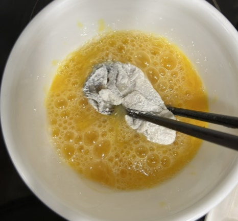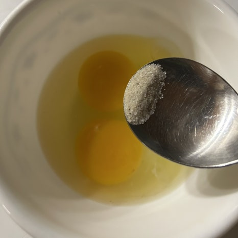 - 계란물엔 가는 소금을 넣어 잘 녹여 주세요.