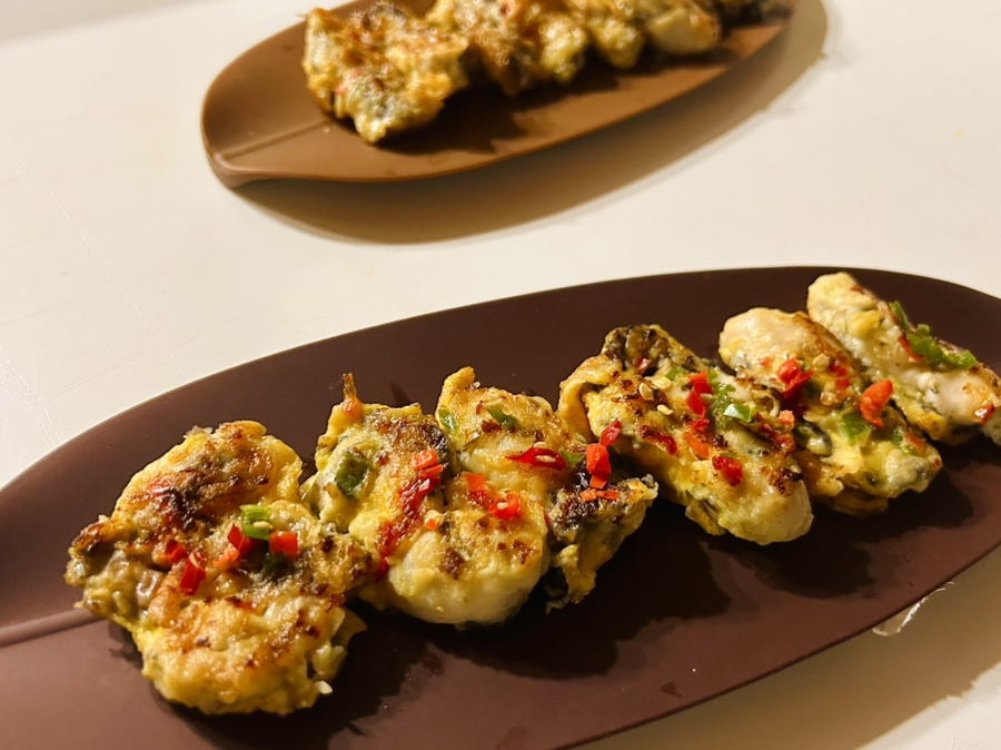 청양고추의 매콤함과 참기름의 고소함이 굴전을 코팅해서 먹을 때마다 기분이 엄청 좋아질 만큼 맛있어요.