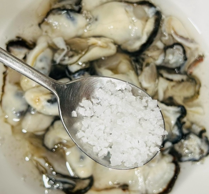 1. 굴을 소금물에 씻기