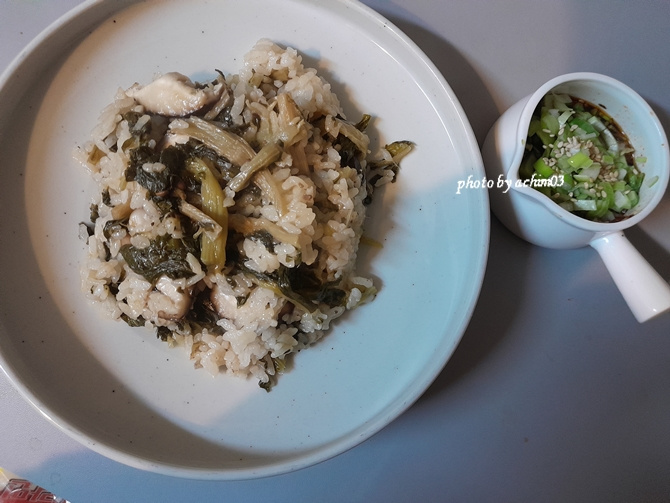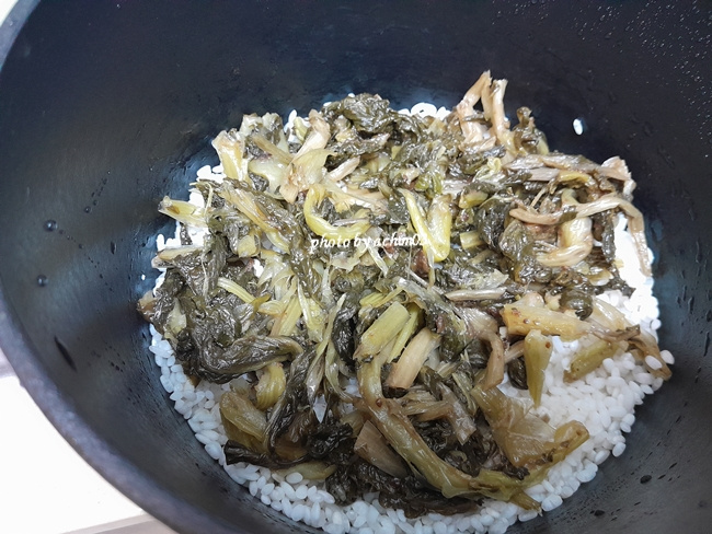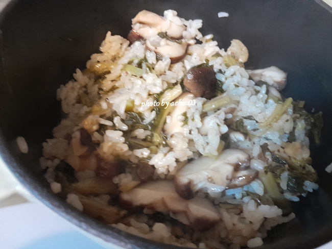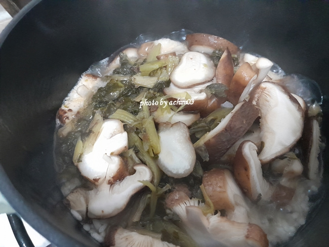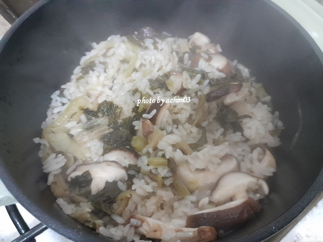 무청 시래기 200g , 송향버섯 슬라이스 120g , 쌀 2인분