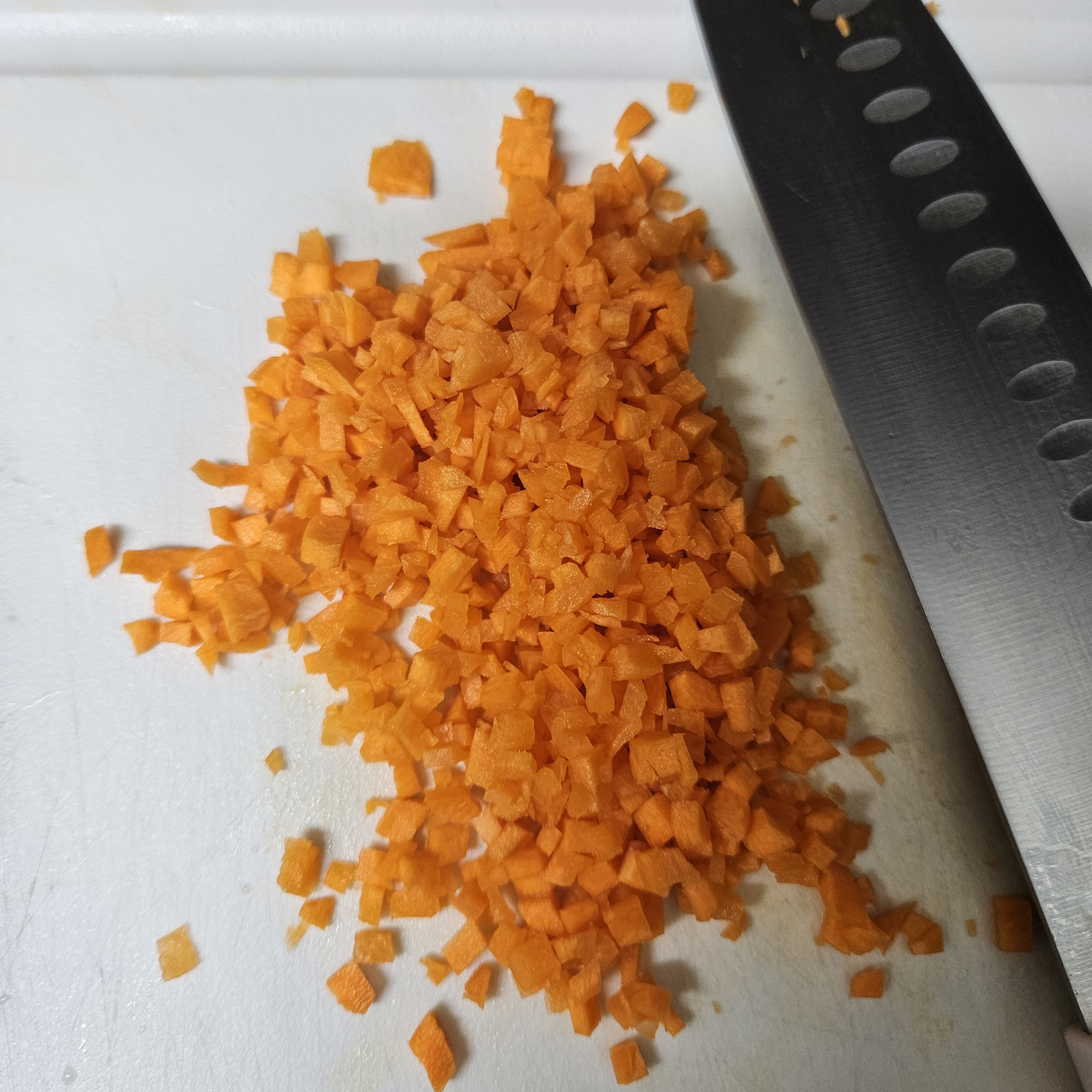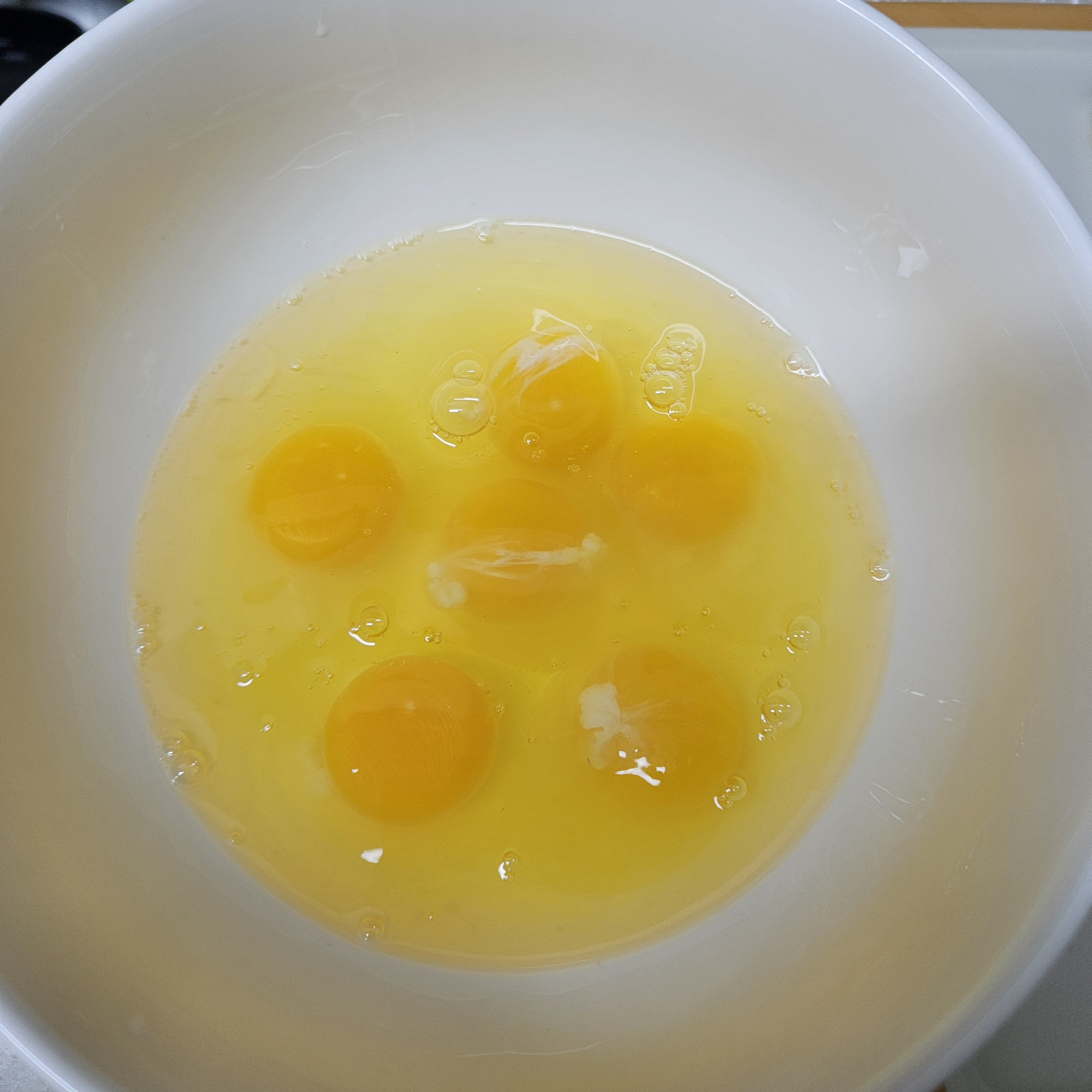 계란 6 알 , 당근 1/5 개 , 파 1/5 개 , 오일 1 T , 소금 1/2 T , 참기름 1 T , 통깨 1 T , 김 2 장 , 밥 1/2 공기