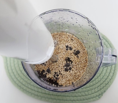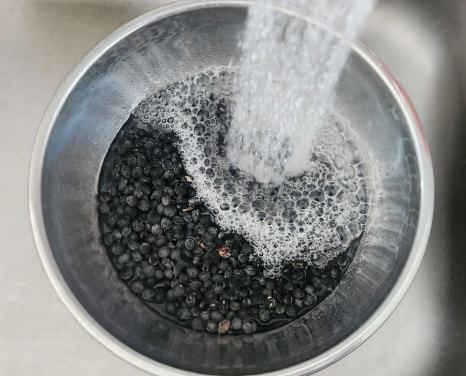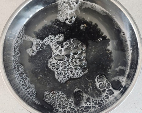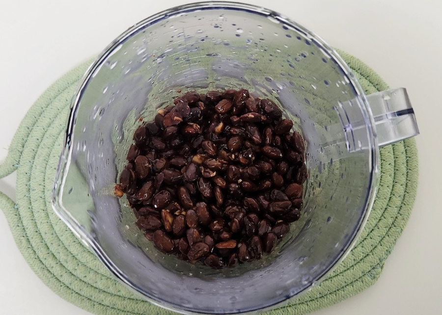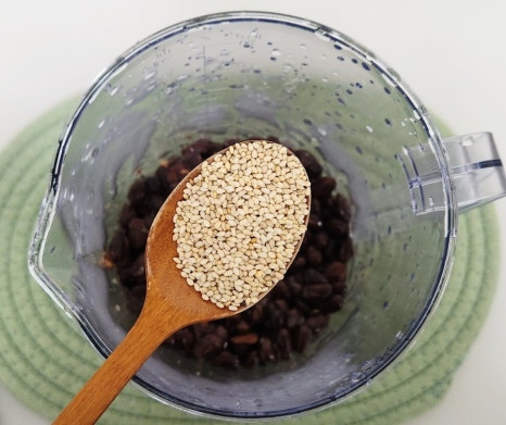 서리태콩 200 g , 통깨 3 T , 소금 , 설탕 , 생수