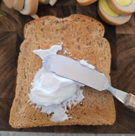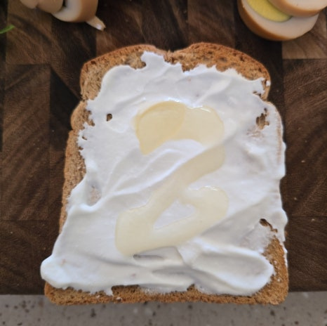 여러분, 진짜 이 조합은 '맛의 킥'이 어마어마하다니까? 거친 통밀빵 위에 생크림보다 더 꾸덕꾸덕한 그릭요거트를 아주 듬뿍 깔아주세요. 그 위에 싱그러운 루콜라를 무심하게 툭~ 얹어주는 게 포인트!