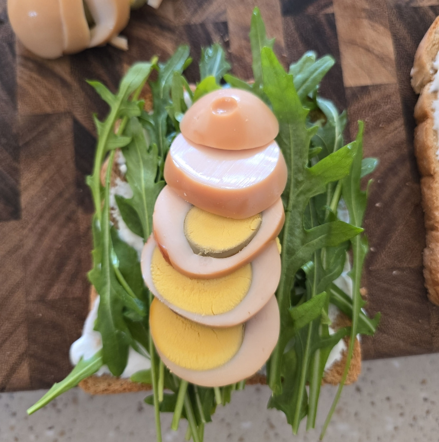 여기에 압력솥에서 인내심 있게 구워내 쫀득한 구운 계란을 슬라이스해서 올려보세요. 단백질의 묵직함과 루콜라의 향긋함. 여러분의 평범한 아침을 순식간에 청담동 브런치 카페로 바꿔줄 거예요.