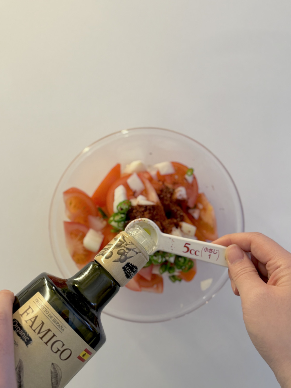 토마토가 담긴 볼에 함께 넣어줍니다.