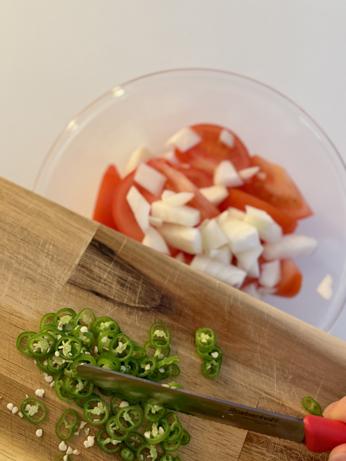 청양고추 2개를 송송 썰어 볼에 넣고,