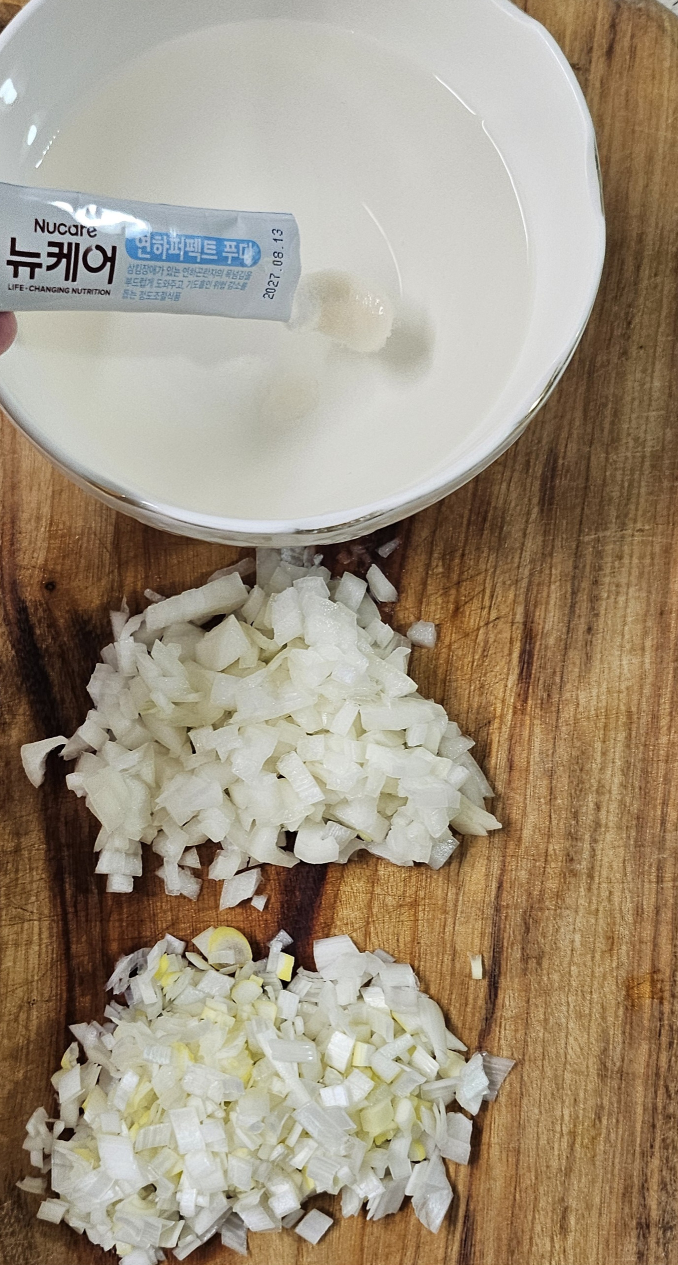 오늘 요리는 삼킨장애 중에 그래도 약간의 씹을 힘이 있는 환자를 위해 만들었습니다