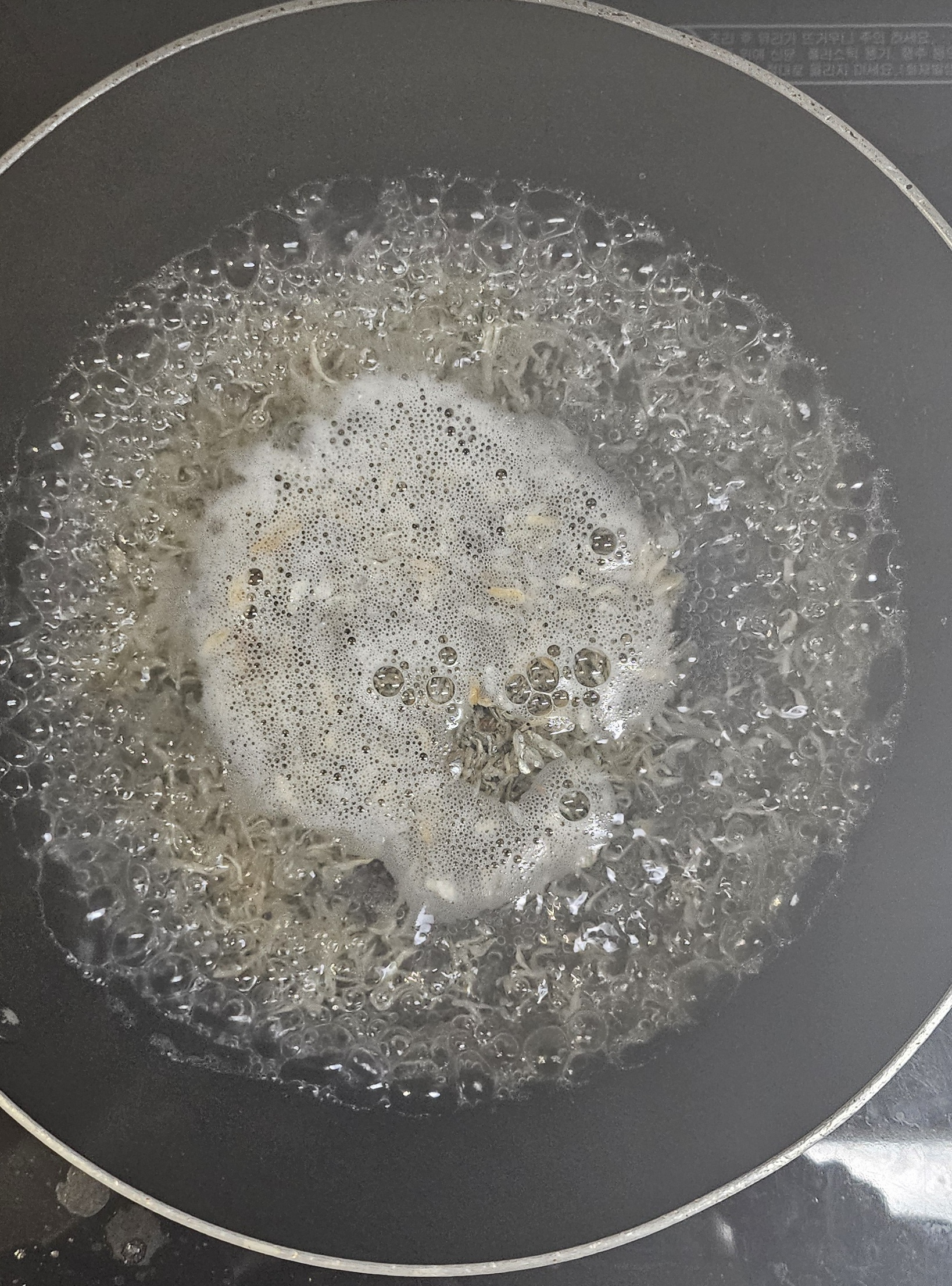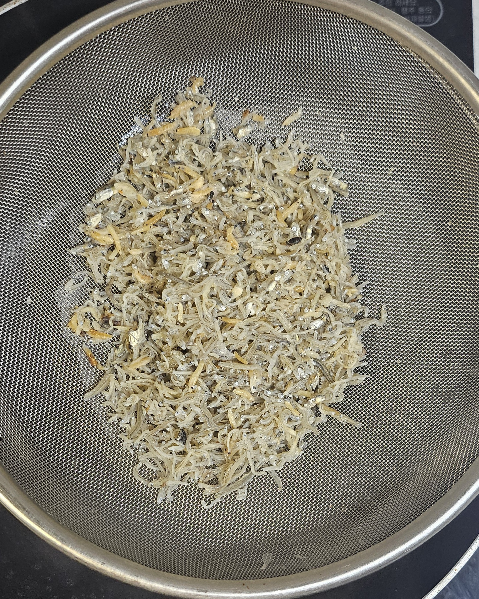 *잔멸치를 끓은 물에 데쳐서 비릿네와 짠맛을 제거하고, 멸치를 부드럽게 했습니다