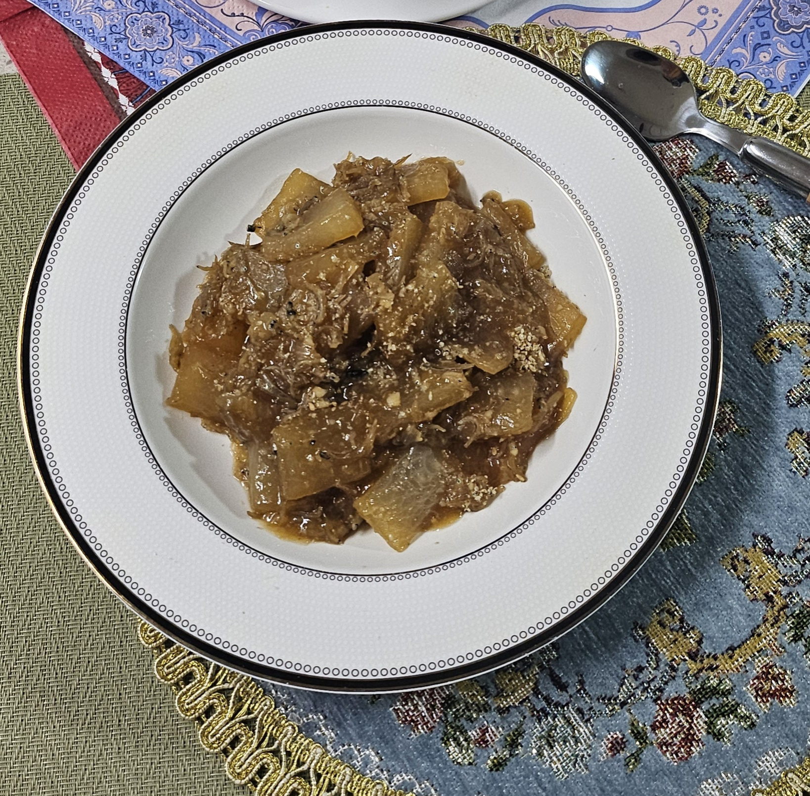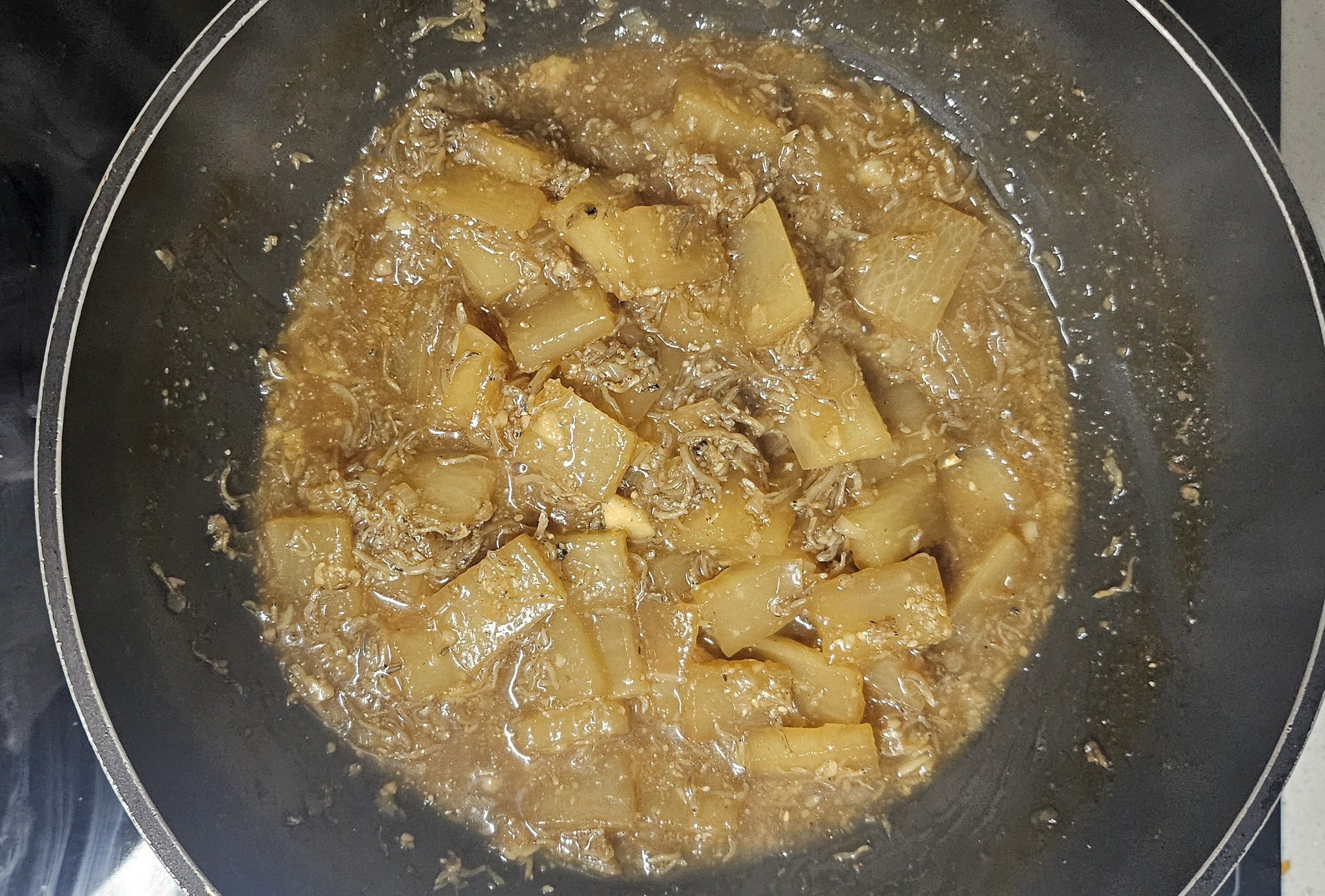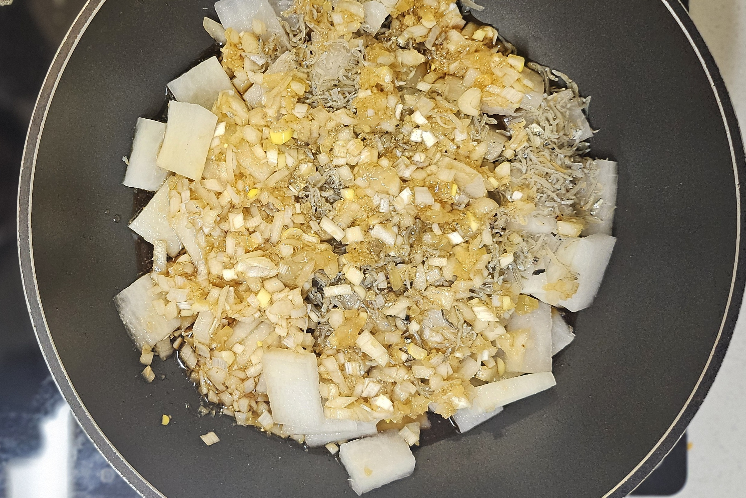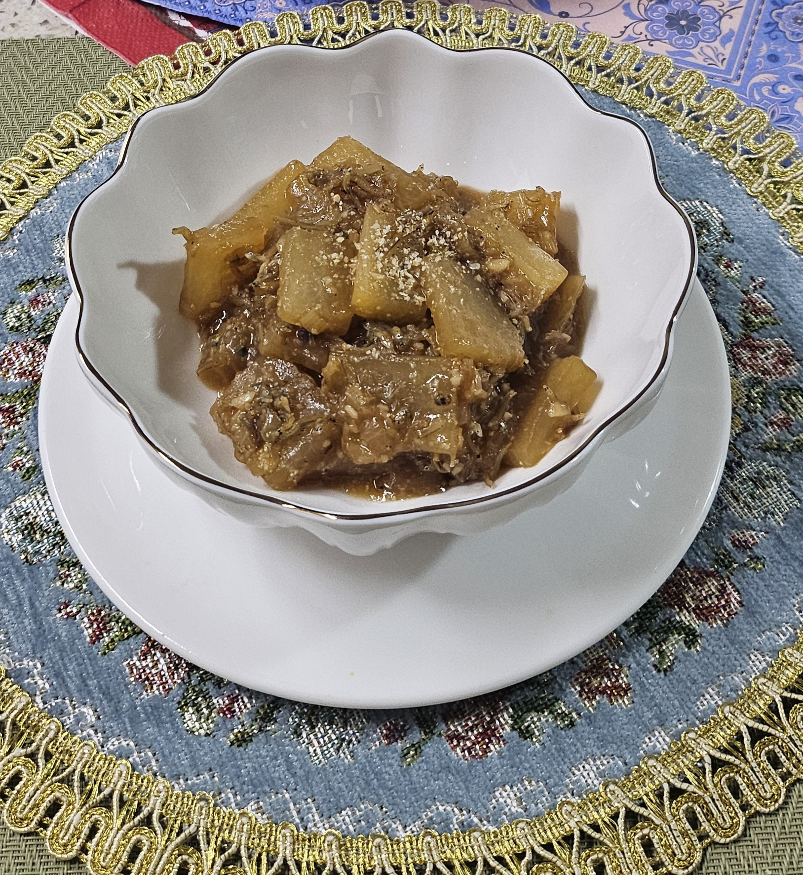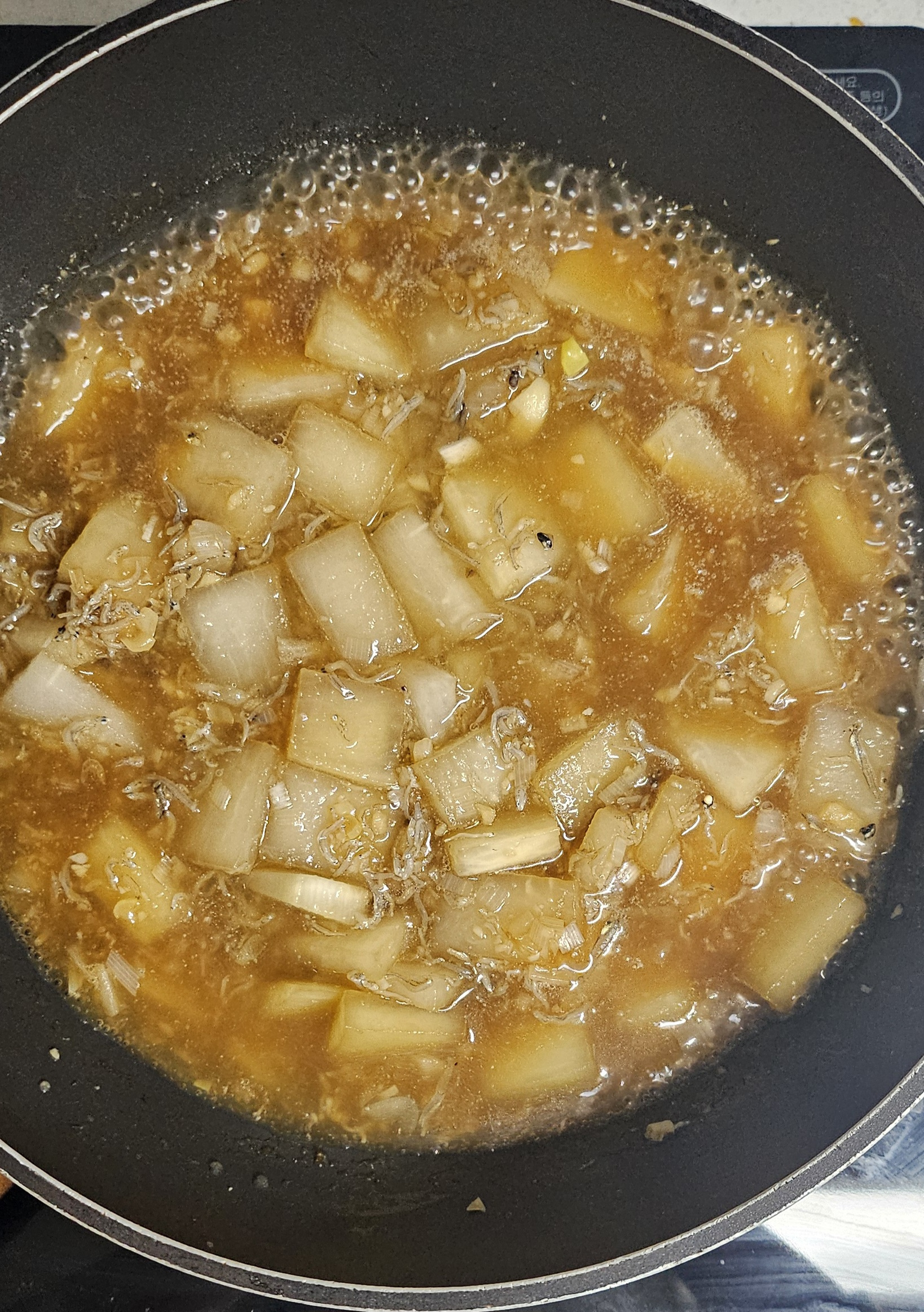 잔멸치도 무우도 부드럽게 익혀 요리했습니다.약간의 찝질한 반찬을 원해서 간을 좀 했는데 양념간장은 기호나 환자 상황에 따라 단맛과 짠맛을 가감합니다