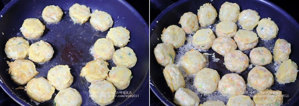 한번 부친 동그랑땡을 옮겨놓고 두 번째 부칠 때는 팬을 깨끗하게 닦은 후