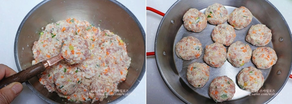 돼지고기를 주재료로 하는 동그랑땡 재료는 기호에 맞게 준비하시면 되는데요