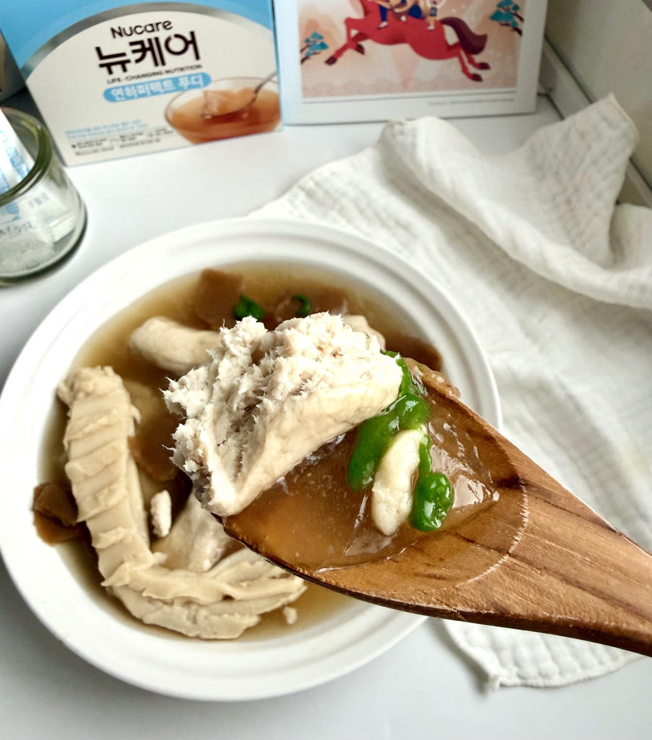 연하곤란자를 위해 영양이 가득한 "삼계탕" 한 그릇 요리를 준비했습니다. 연하퍼펙트 푸디를 활용해 삼킴 부담을 줄여, 연하곤란자도 안전하게 즐길 수 있도록 했습니다. 삼킴장애로 충분한 영양 섭취가 어려운 환자분들께 지친 몸의 기력을 회복하는 데 도움이 되기를 바랍니다.
