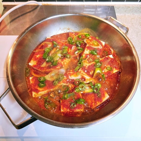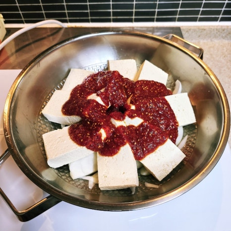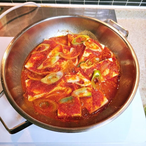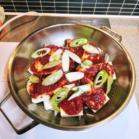 자른 두부를 양념장 가득 넣어