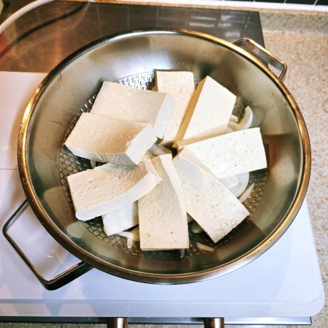 그 위에 자른 두부를