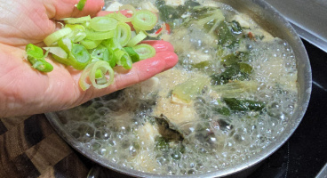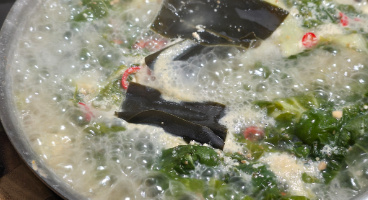 명절 기분내는 뚝딱 손님접대 한 상차림(시락국,돼지고기시금치볶음,새송이버섯전,냉이무침)