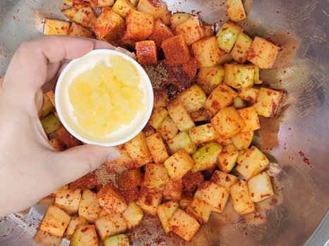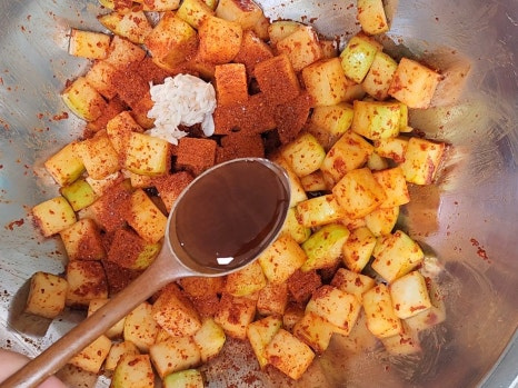 멸치 액젓 3T , 새우젓 1T , 고춧가루 4T , 매실청 2T , 설탕 0.5T , 다진 마늘 2T