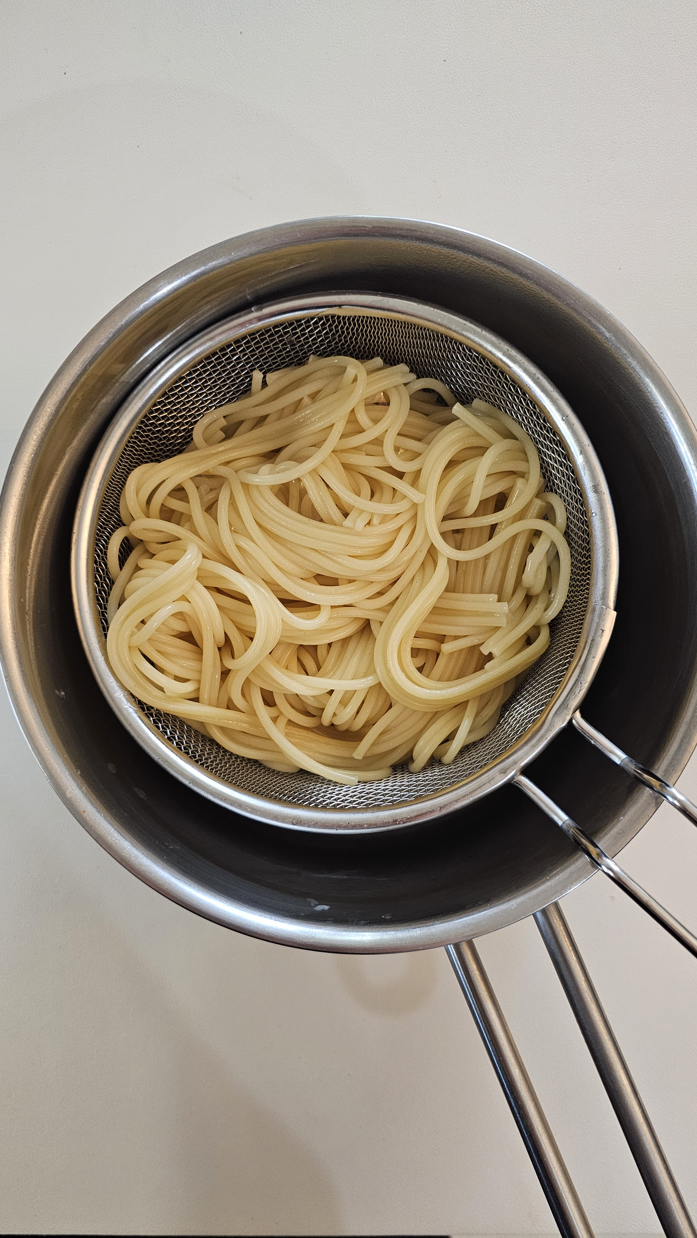 농도가 되직하면 면수를 보충하고 묽으면 파마산 치즈가루로 맞춰 주세요.