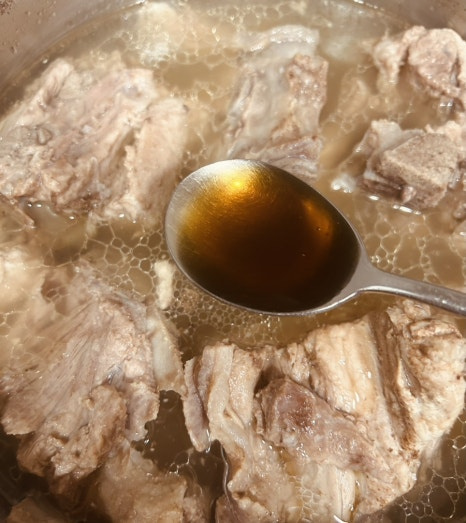 소고기 갈비탕보다 기름기가 적어서 맛도 깔끔하고 채수로 잡냄새도 제거하고 맛성분은 듬뿍 우러나요.