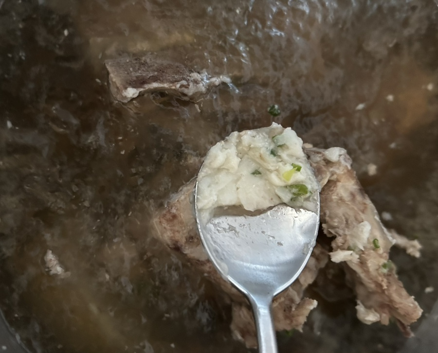 압력솥으로 익혀서 등뼈에 붙은 살도 부드럽게 익어서 잘 발라지고 국물은 소고기 무국 못지 않게 진하고 시원해서 국물을 자꾸 떠먹게 되요.