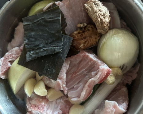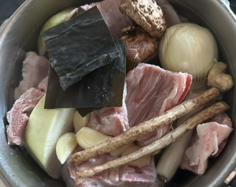 같은 레시피를 활용해서 이번에는 돼지 등뼈를 활용해 갈비탕 같은 맛을 내는 등뼈탕을 만들어 봤어요.