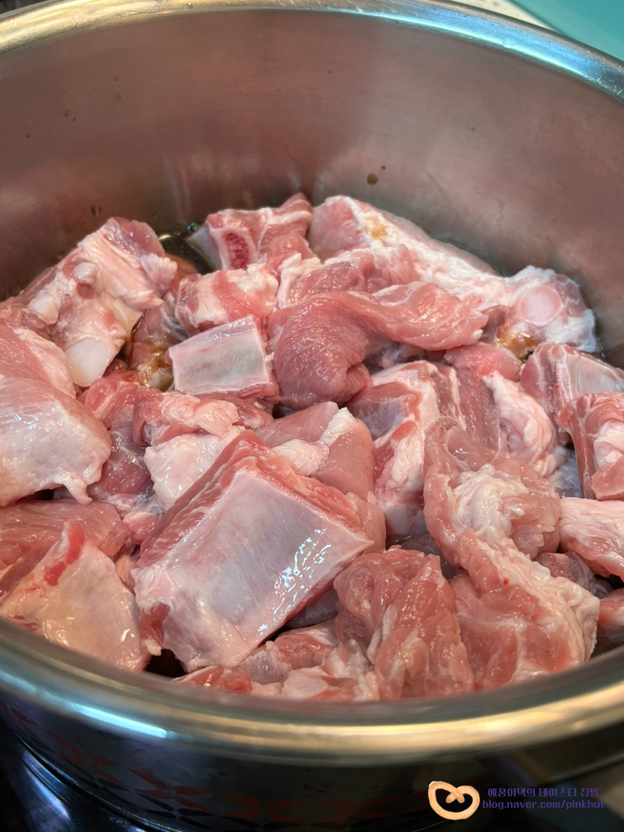 오늘은 믹서기 없이, 압력솥 없이! 데치는 별도의 손질 없이! 초보자분들도 성공하는 초간단 돼지갈비찜 레시피를 알려드리려고 해요.