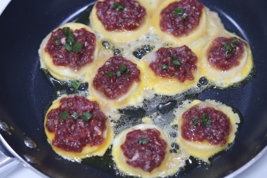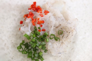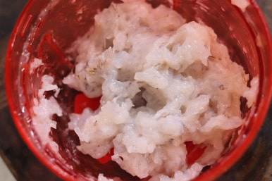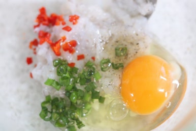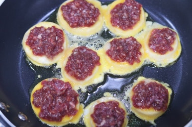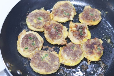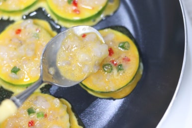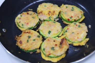 새우 다져서 애호박에 붙여