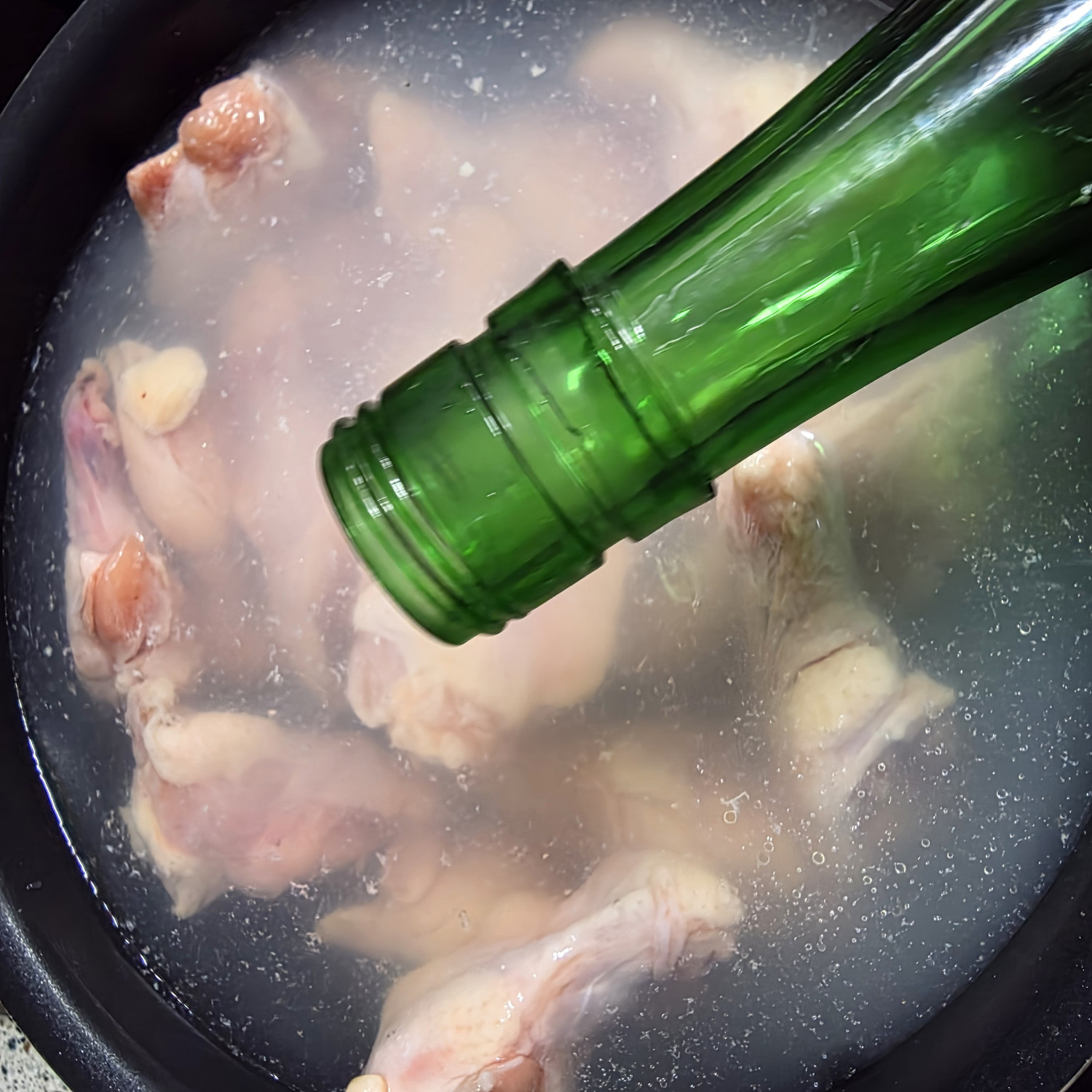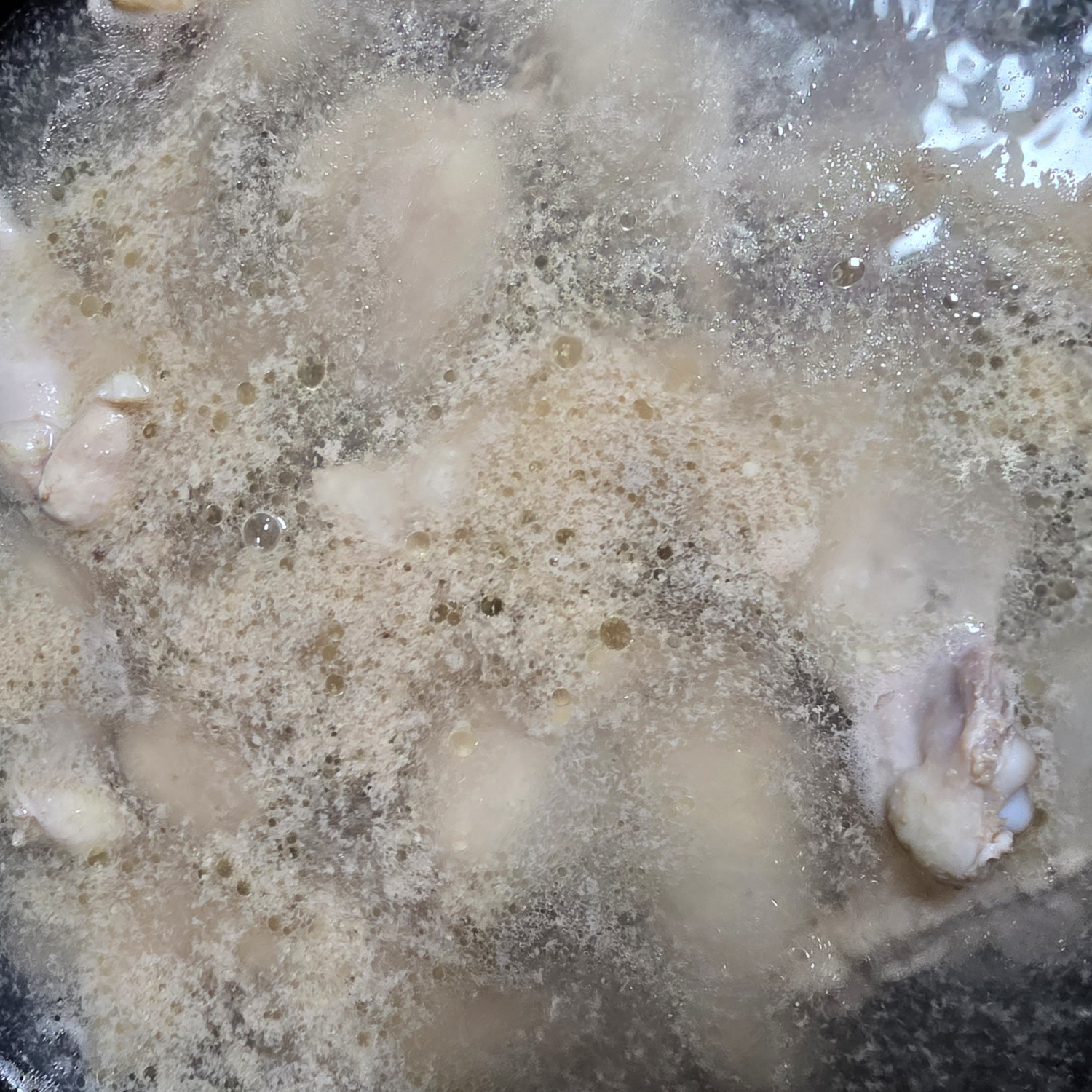냉동닭봉은 번거롭게 해동할 필요 없이 끓는 물에 청주(소주)를 넣어, 살이 어느 정도 익을 때까지 충분히 끓여줍니다.