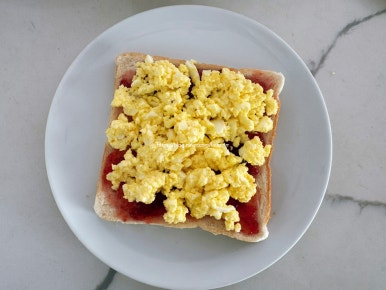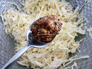양배추 1/3통 , 레몬 1/2개 , 소금 적당히 , 마요네즈 7큰술 , 후추 적당히 , 홀그레인 머스터드 1/3큰술 , 삶은달걀 5개 , 식빵 8장 , 딸기잼 4큰술 , 치즈 4장