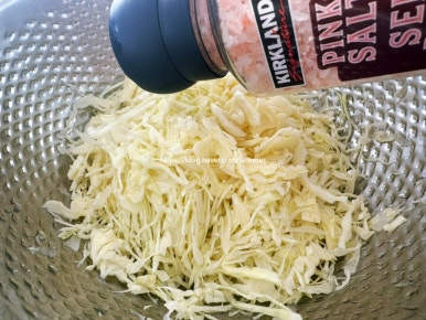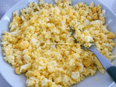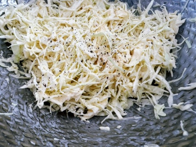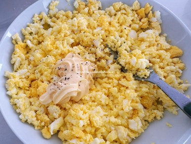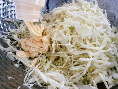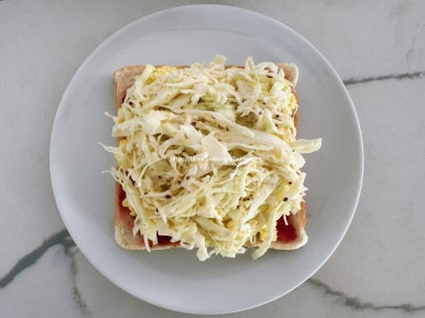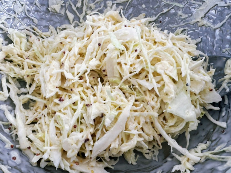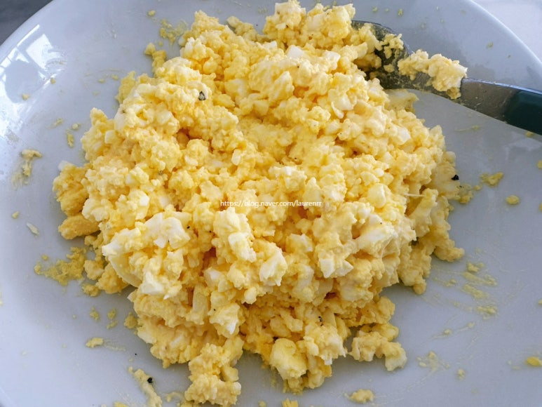 양배추 샐러드와 계란 샐러드를 듬뿍 올린