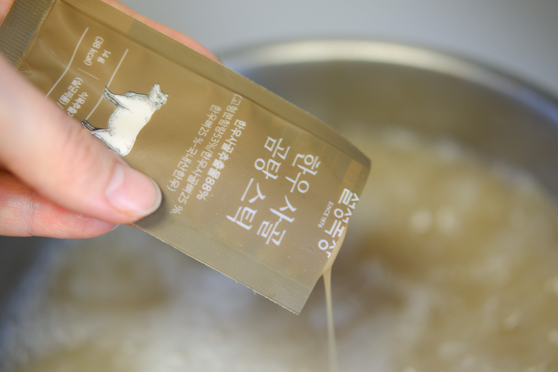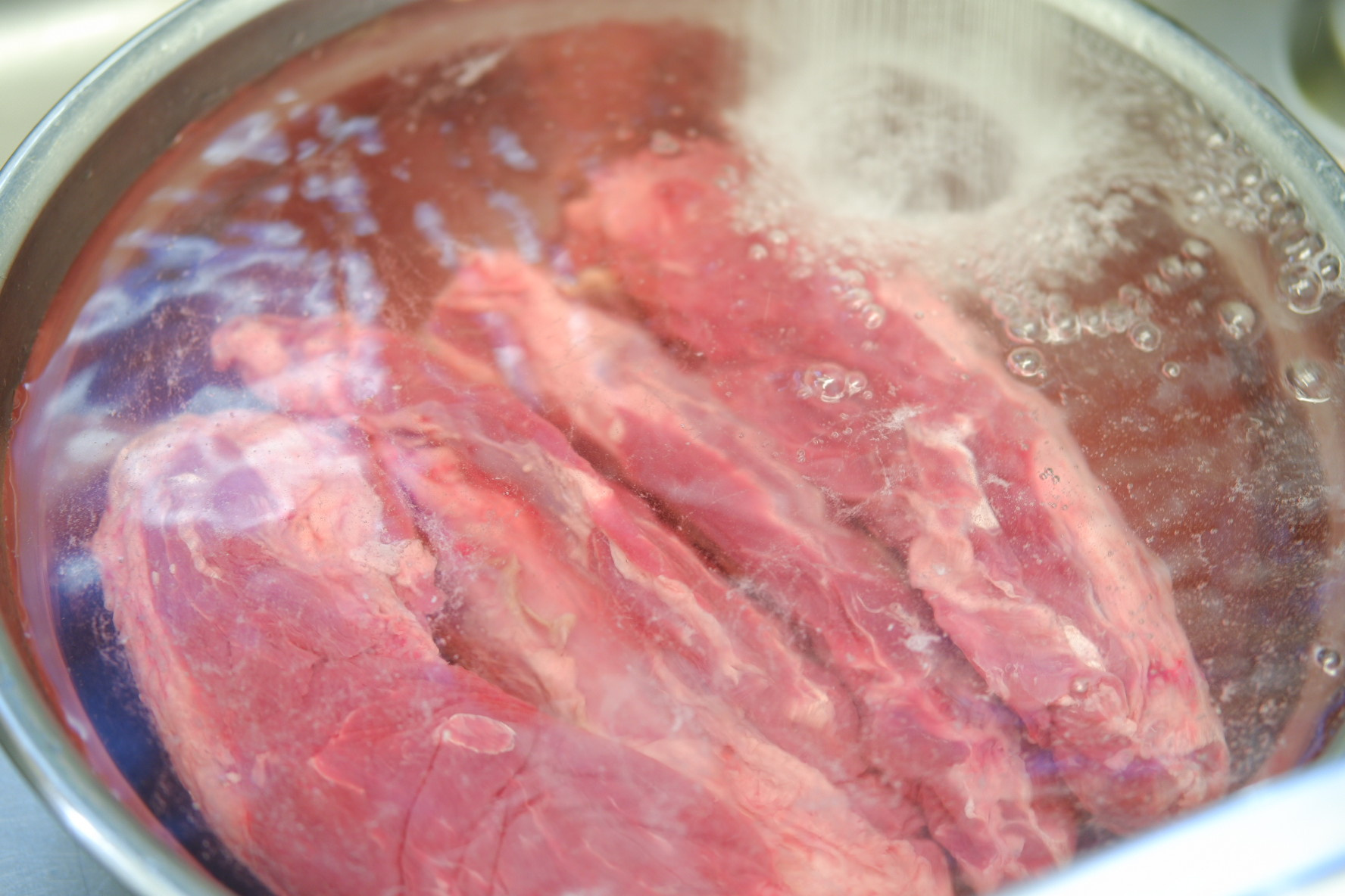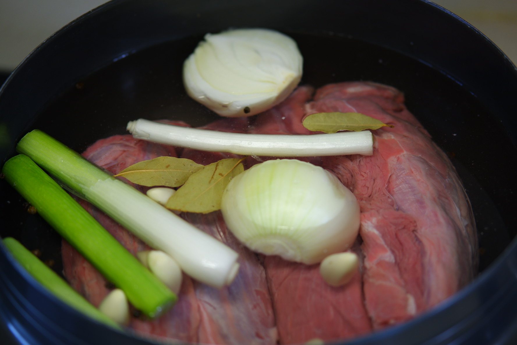 아롱사태 1.5 kg , 양파 1 개 , 대파 1 개 , 통마늘 한줌 , 생강 2 톨 , 월계수잎 2~3 장 , 통후추 , 사골육수액기스 , 소금