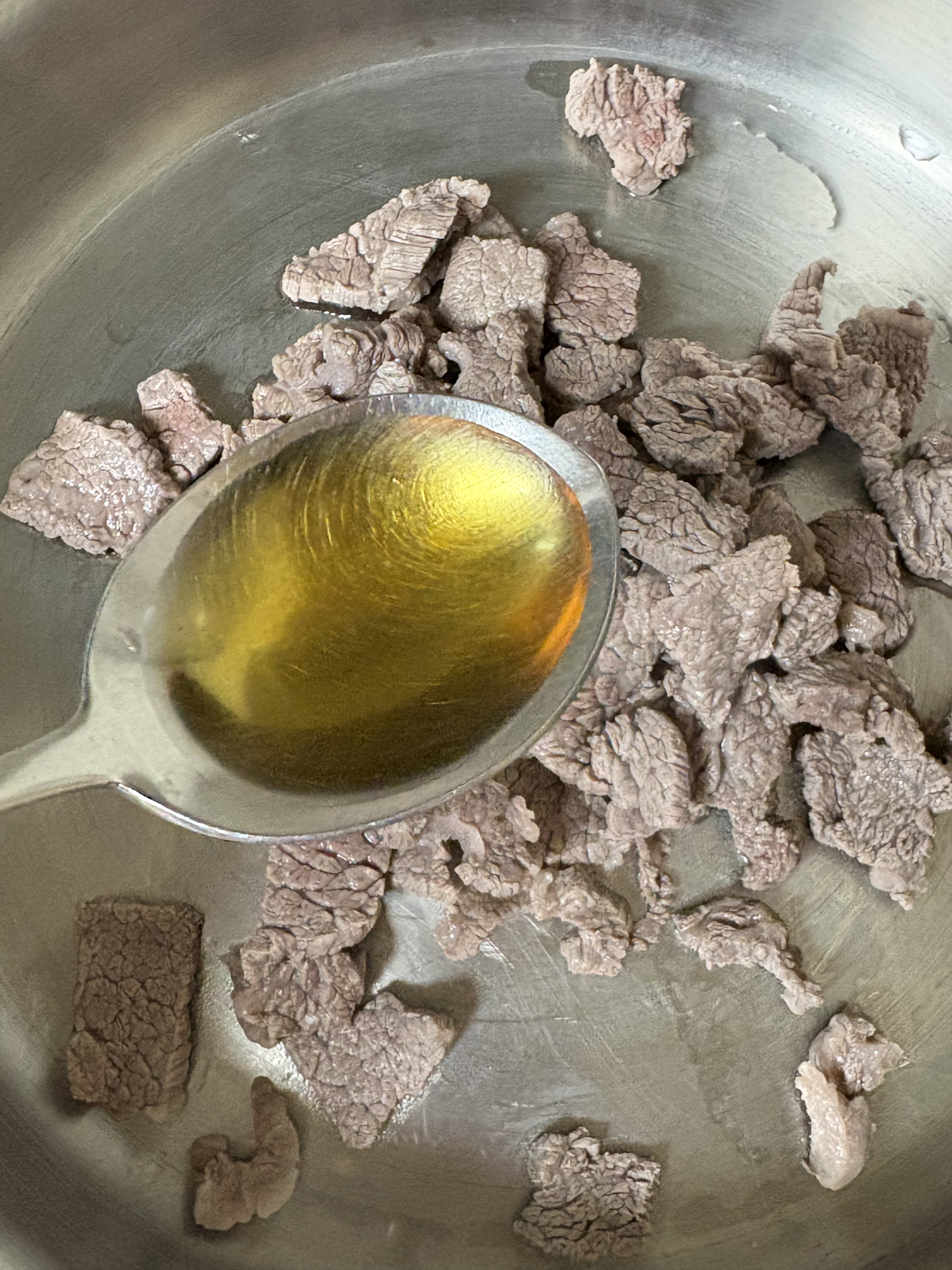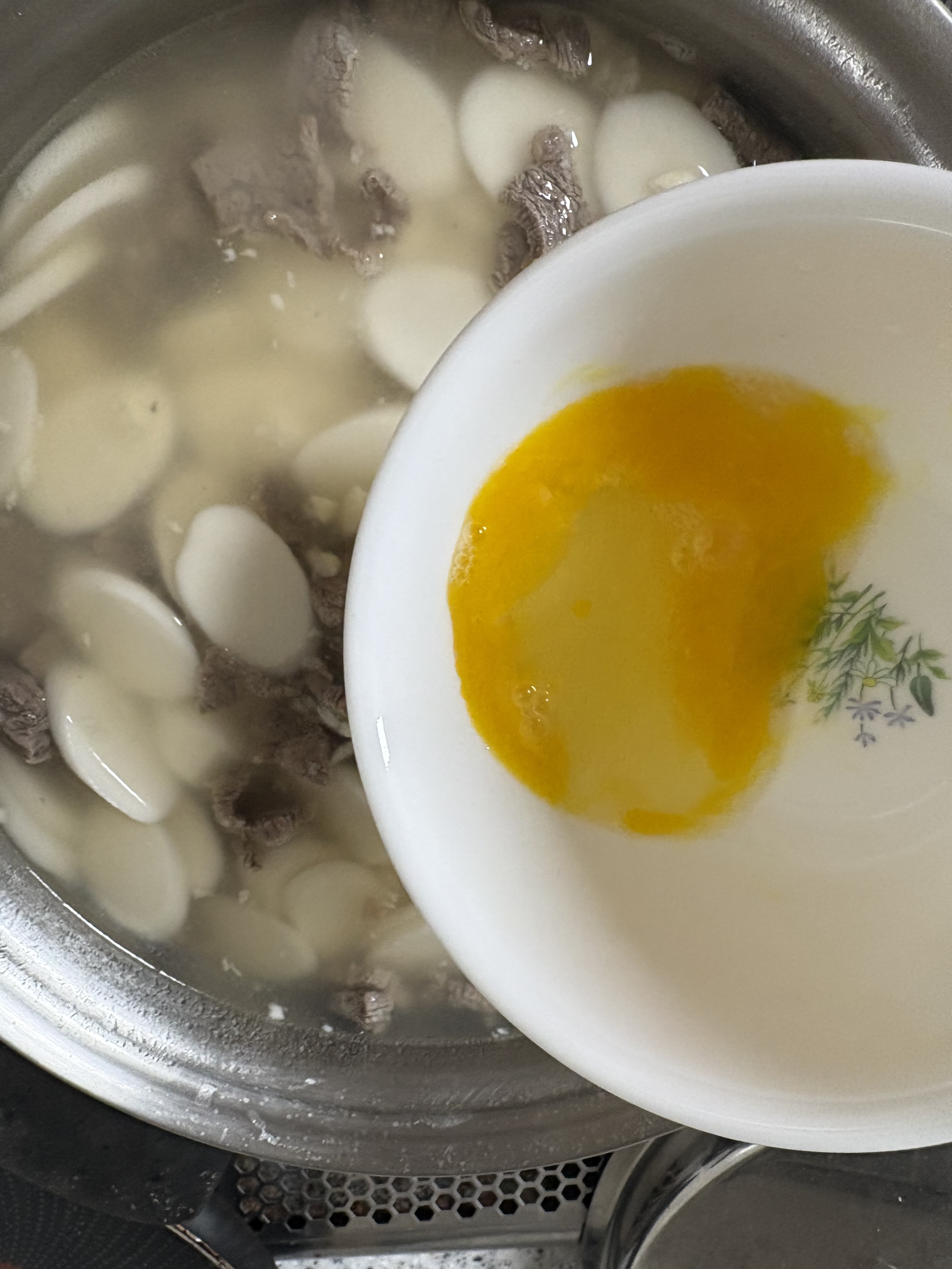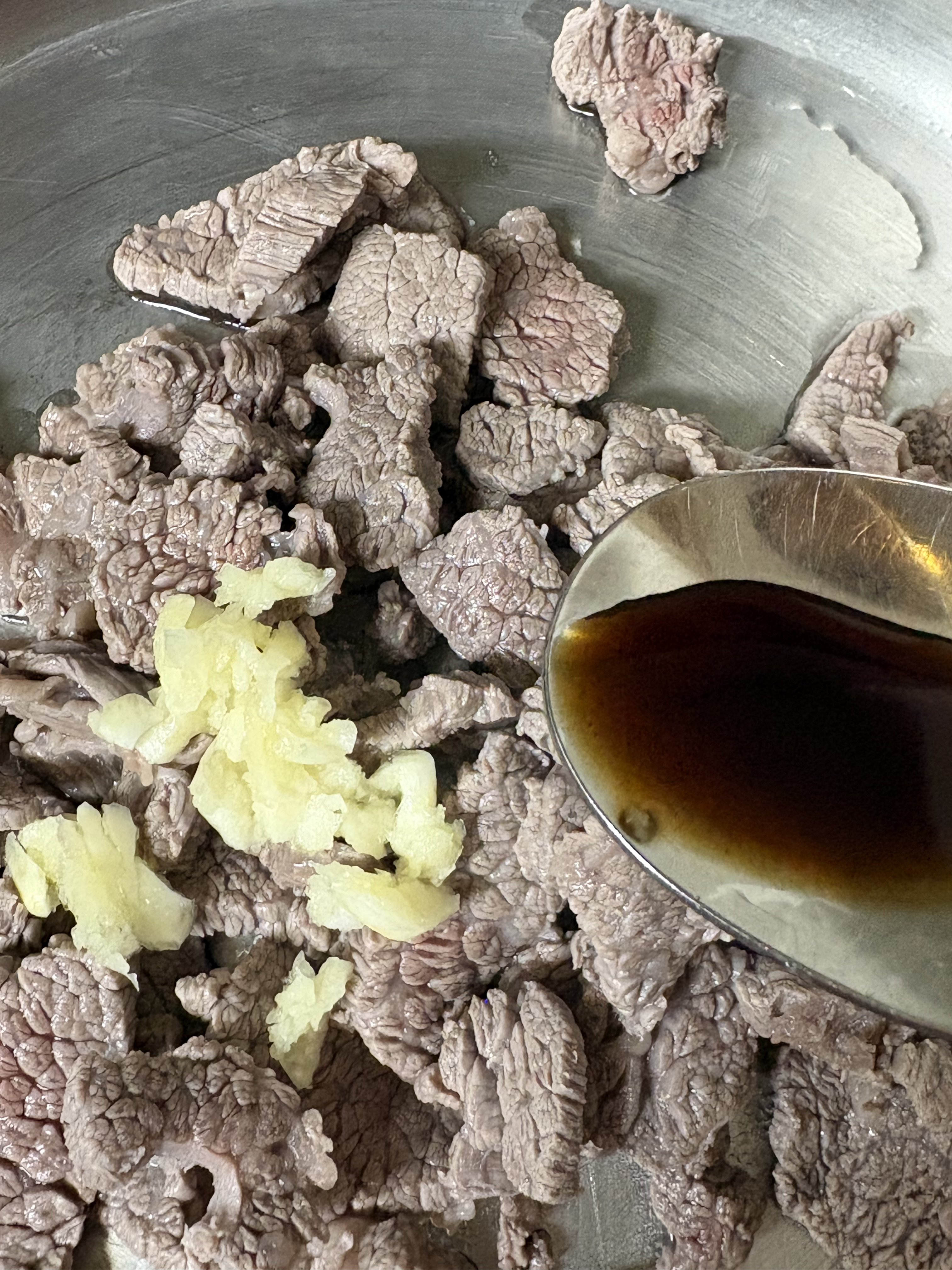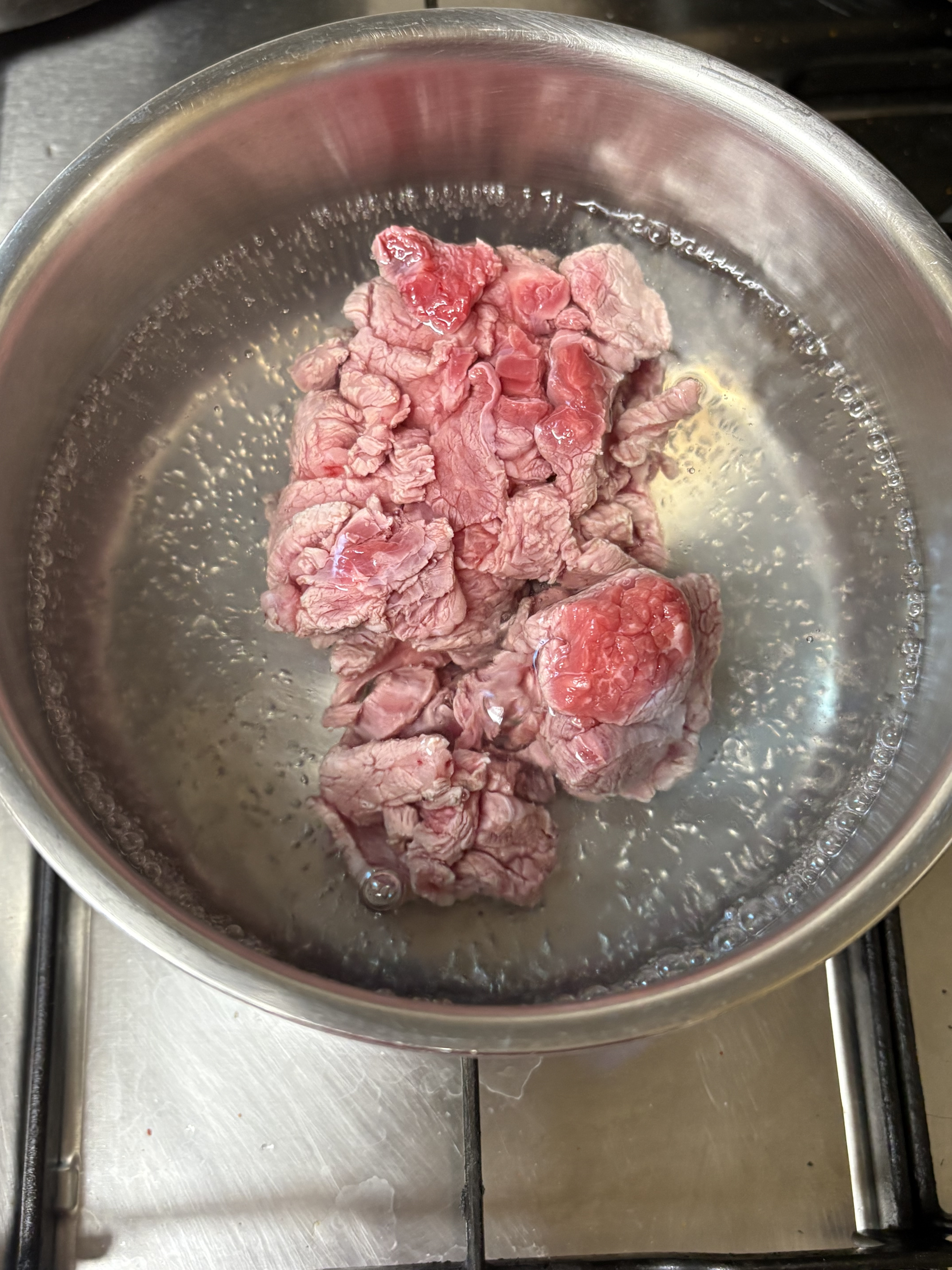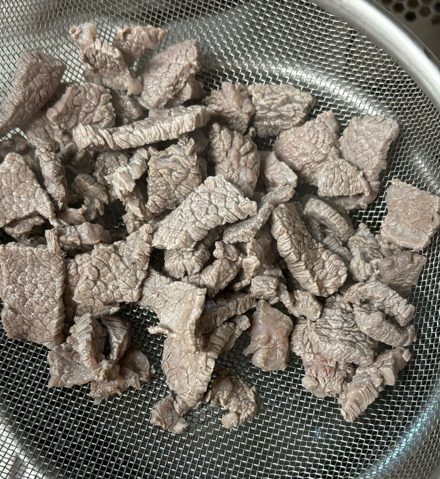 1.소고기는 끓는 물에 살짝 데쳐 핏물과 불순물을 제거해요.