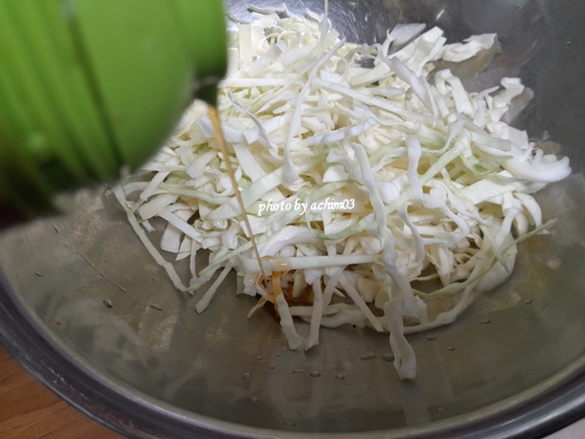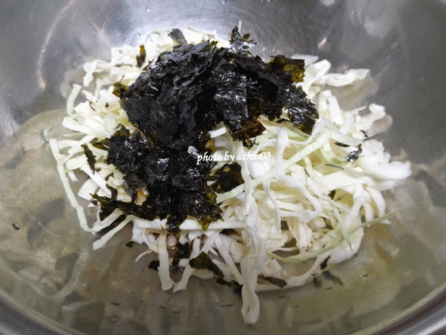 들기름넣고 만드는 양배추김샐러드 입니다
