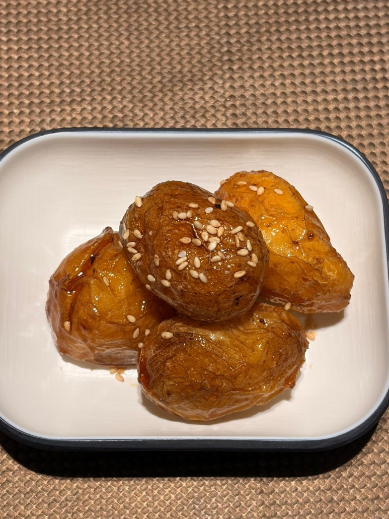 오늘은 밑반찬의 대명사, 알감자조림을 준비했습니다. 보통 물에 삶아 조리하지만, 저는 이번에 냉동 알감자를 오븐에 굽는 방식을 선택했습니다. 껍질은 쭈글쭈글하면서 쫀득하고, 속은 포슬포슬한 식당 특유의 질감을 그대로 재현한 박 실장표 비법 레시피입니다.