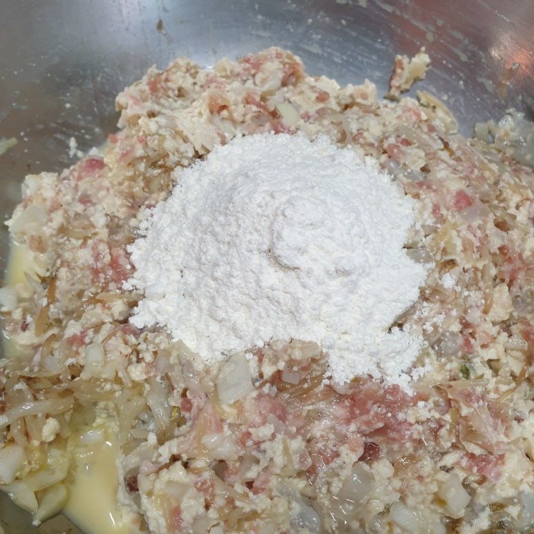 두부 반모 , 다진고기 500g , 숙주 150g , 양파 반개 , 깐새우 한팩 , 오징어 1마리 , 깻잎 20장 , 계란 3개+5개