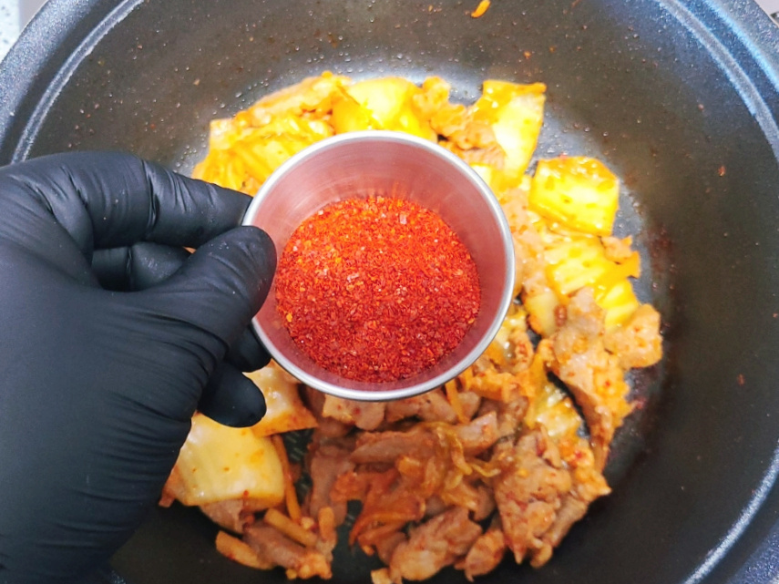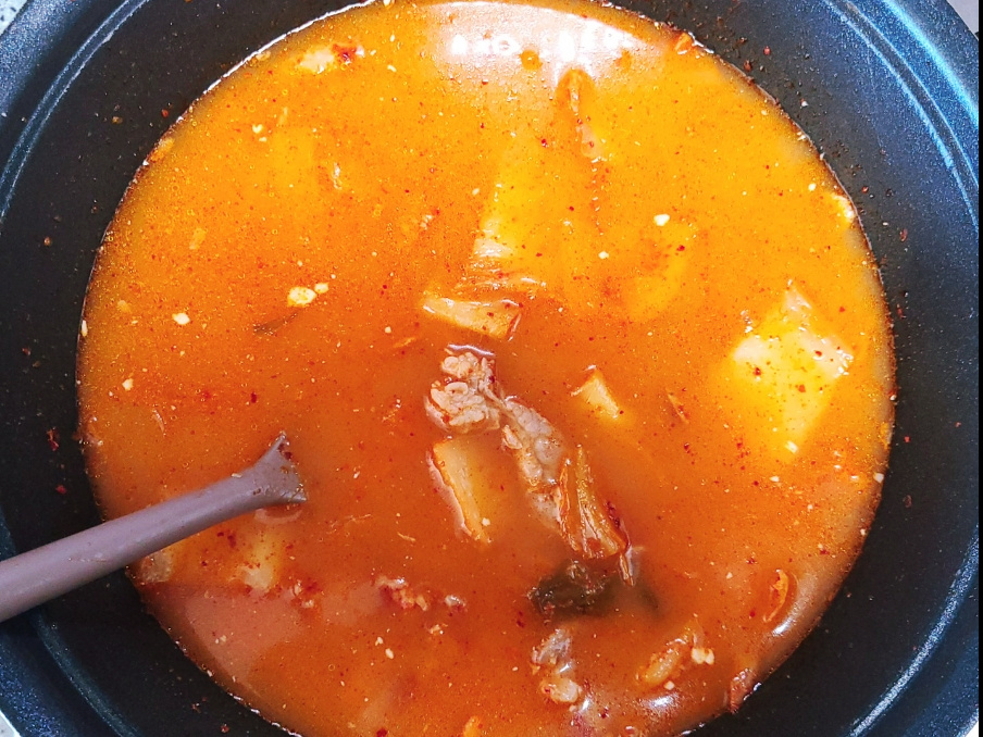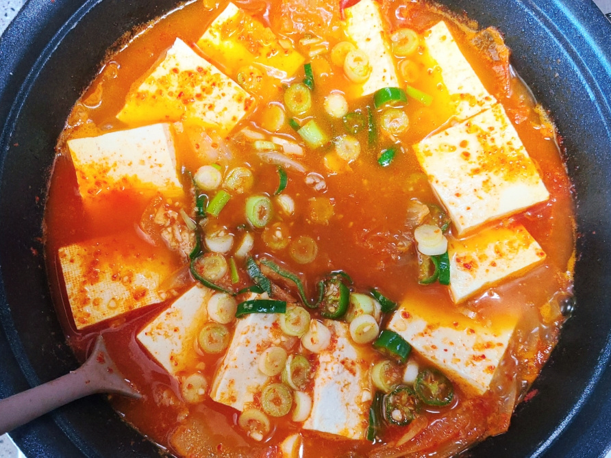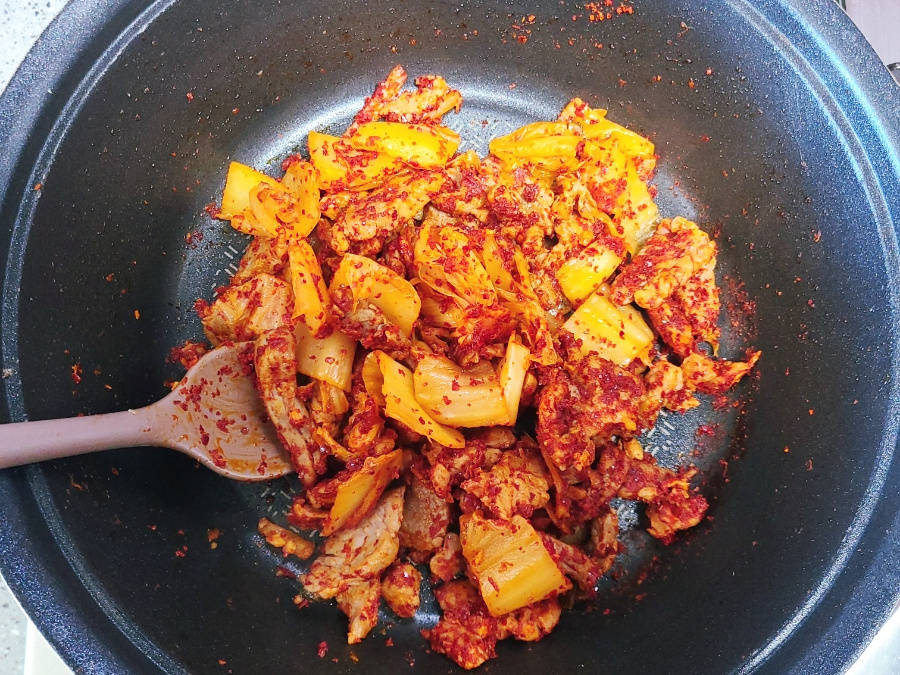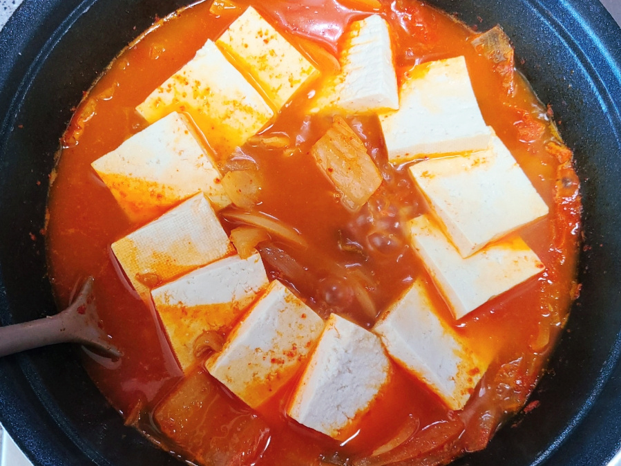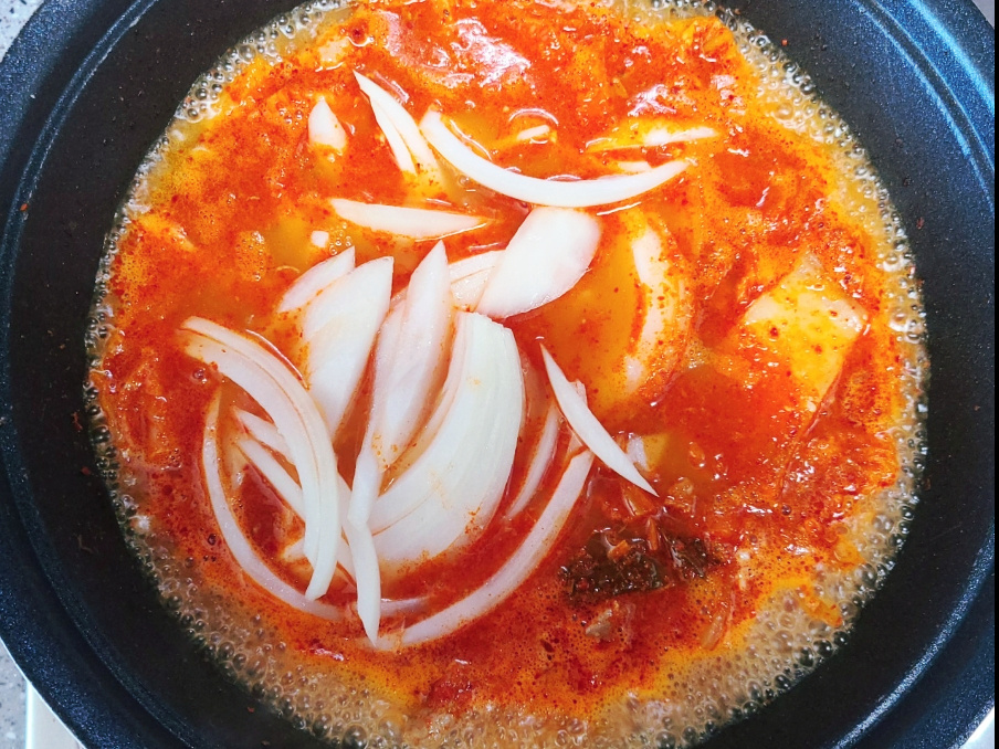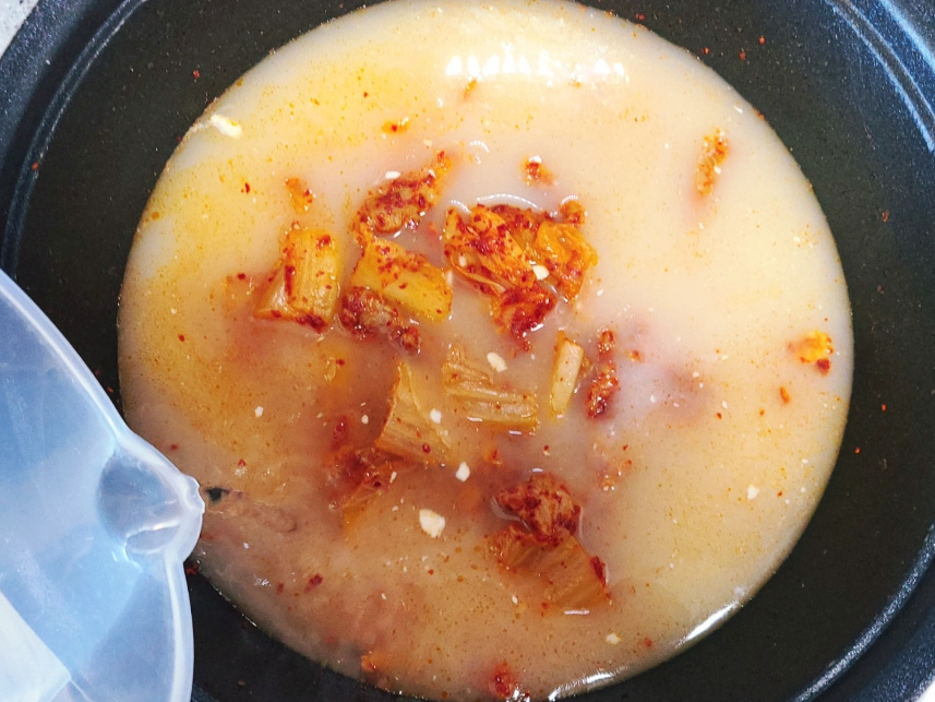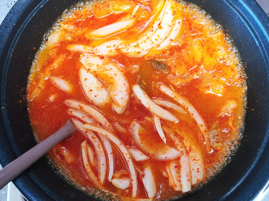 ▶김치는 충분히 볶고 푸~욱 끓여주세요.