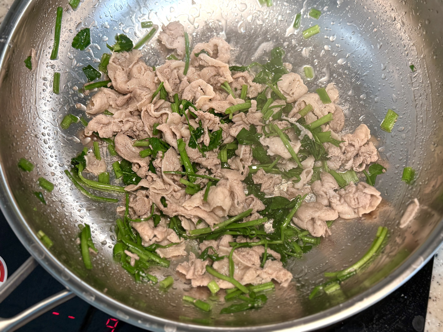 돌미나리 , 대패삼겹살 150 g , 간장 3 스푼 , 참치액 2 스푼 , 고춧가루 2 스푼 , 참기름 1 스푼 , 물 2 스푼 , 깨소금 , 밥 2 공기 , 달걀 2 알