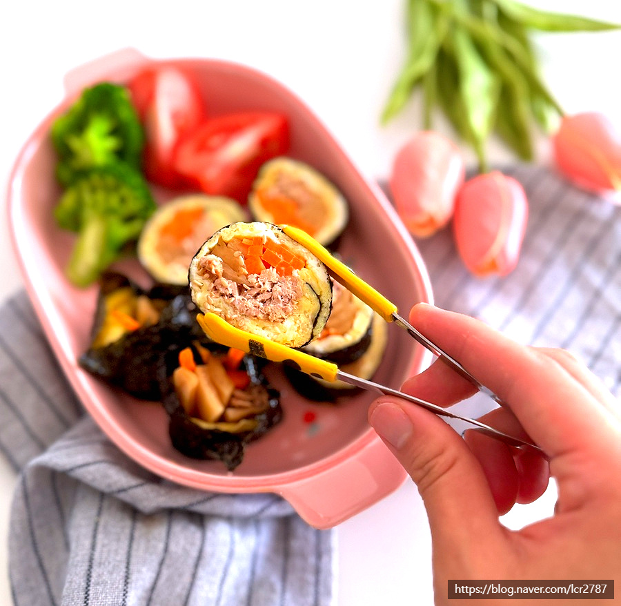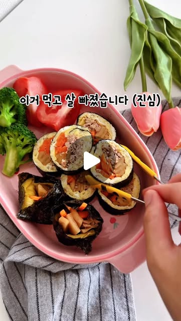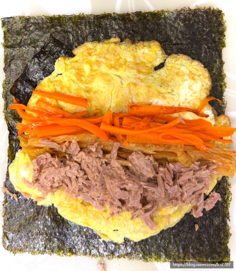 흔히 밥 대신 계란지단을 활용한 저탄수 김밥인데,