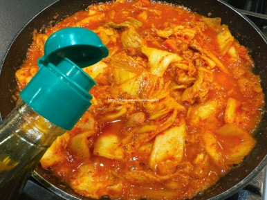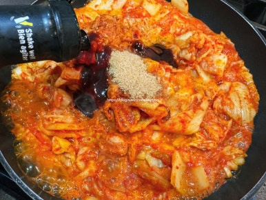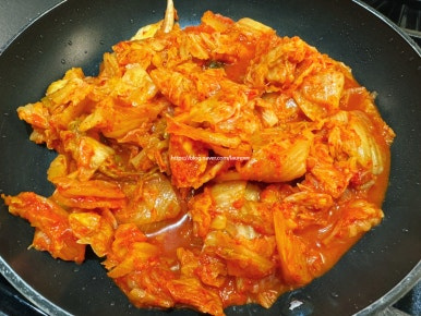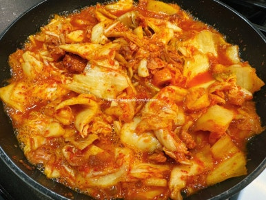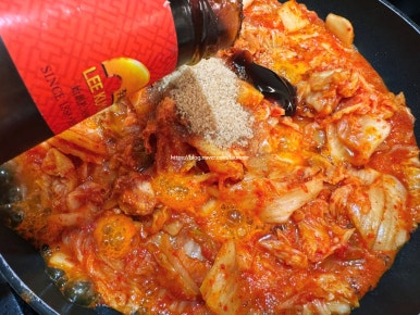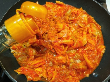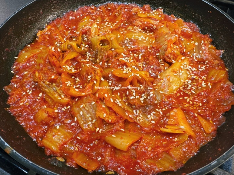 김치 넉넉히 , 고추참치 1캔 , 참기름 2큰술 , 설탕 1큰술 , 굴소스 1/2큰술 , 불닭소스 2큰술 , 들기름 2큰술 , 깨 적당히