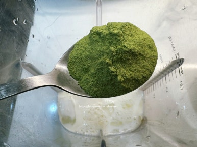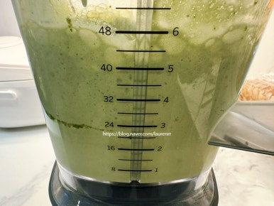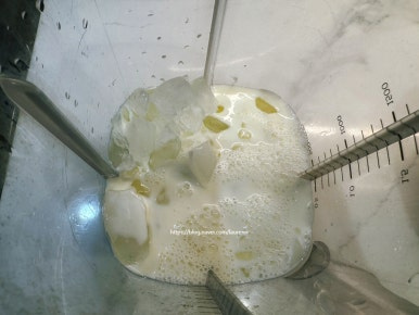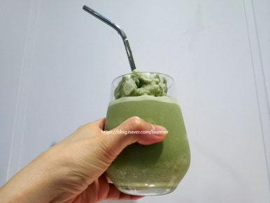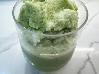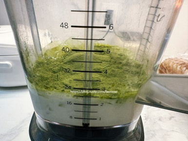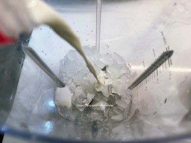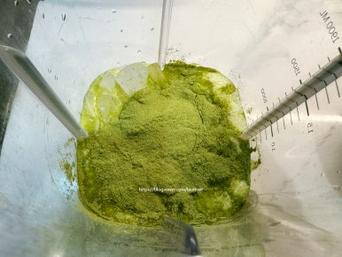얼음 4스쿱 , 우유 300ML , 메이플 시럽 4큰술 , 오설록 말차가루 4큰술
