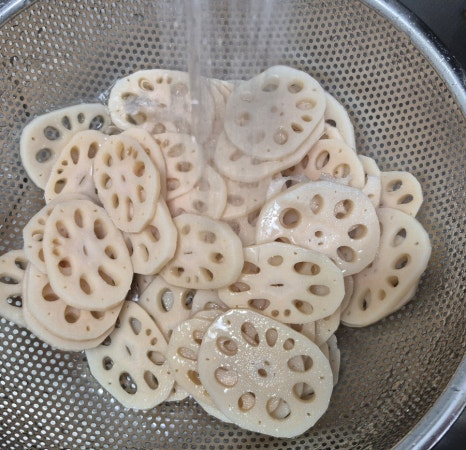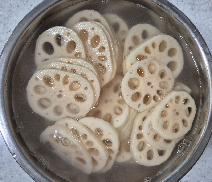 ✔️연근을 식초물에 담그면 갈변을 막고 떫은맛이 제거돼요.