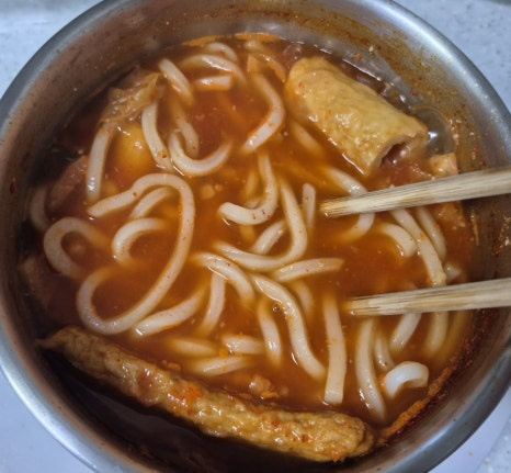 얼큰한 국물에 쫄깃한 어묵과 우동면까지 듬뿍 넣은