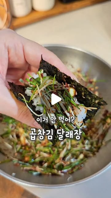 저는 특히 곱창김을 바삭하게 구워 따끈한 밥 위에 올려 먹는 걸 좋아해요. 김 위에 밥 한 숟가락 그리고 달래장 올려 싸 먹으면 밥 한 공기 순삭 이예요~