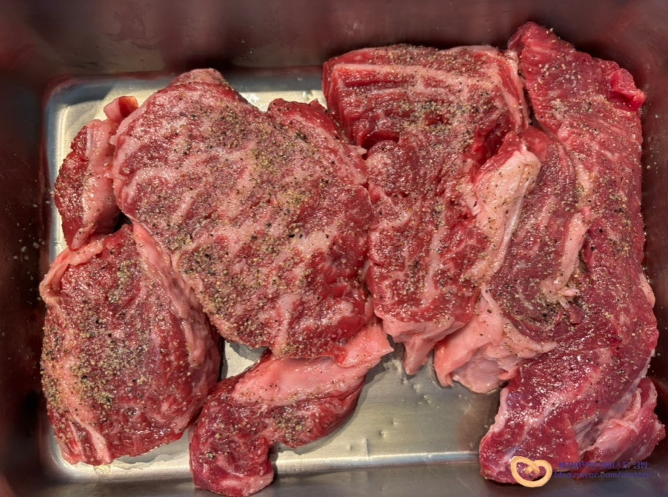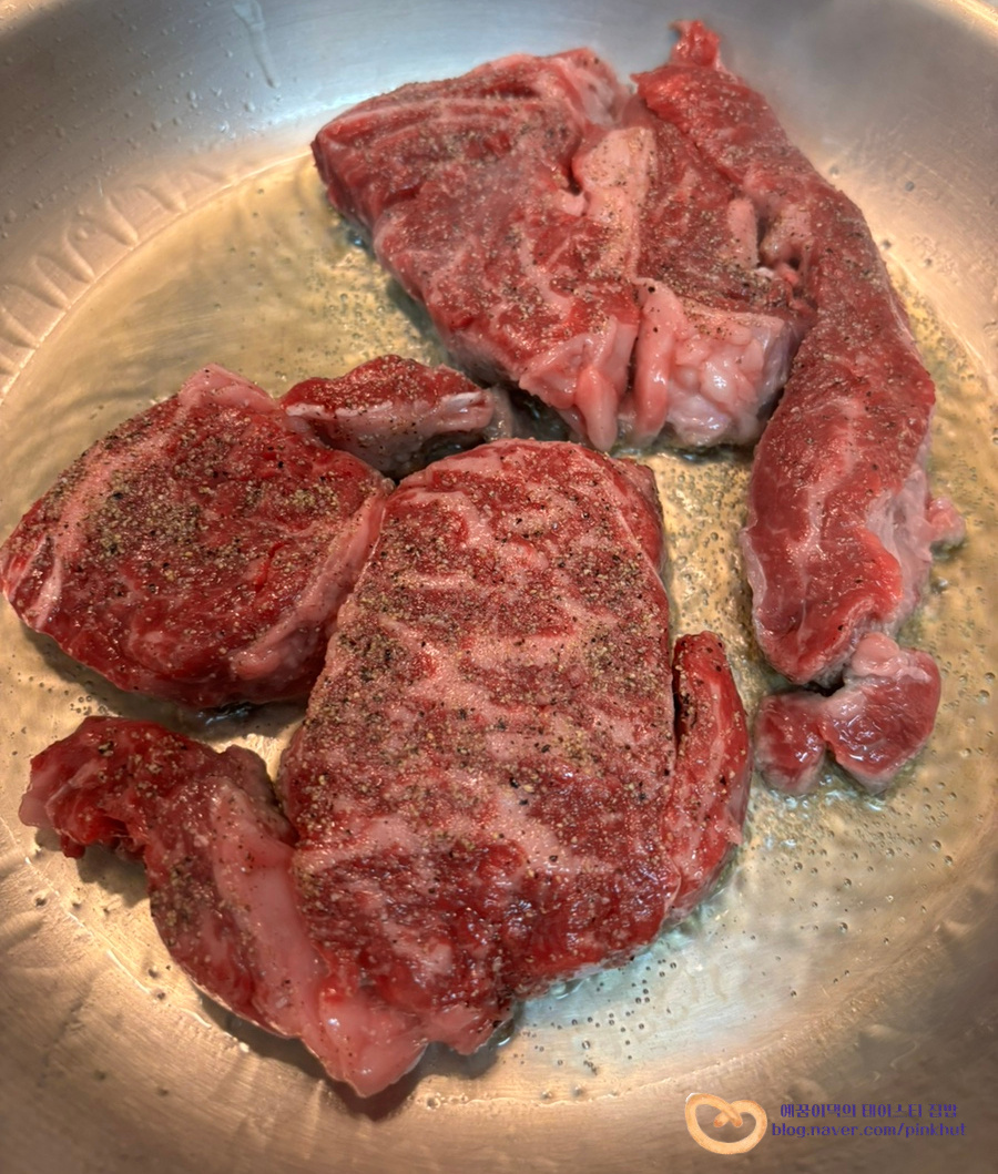 미디엄 웰던 보다 살짝 덜 익혀 속살은 부드럽고요, 겉은 바삭!