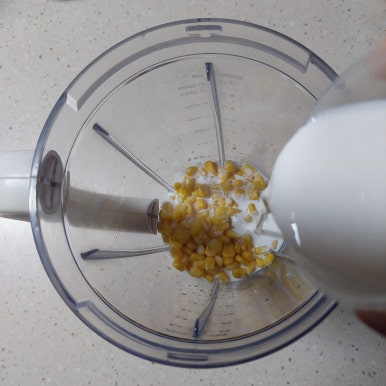 캔옥수수 2 컵 , 우유 1 컵 , 버터 1 큰술 , 밀가루 2 큰술 , 소금 약간 , 흰 후춧가루 약간
