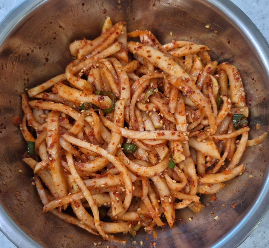 매콤 아삭한 생채를 만들면서 무 대신 콜라비를 사용해 보세요.