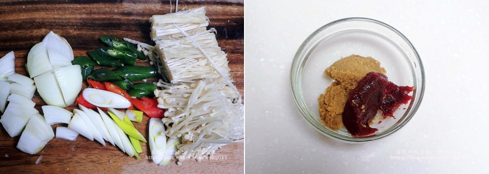 된장 2큰술과 고추장 1큰술을 준비했어요