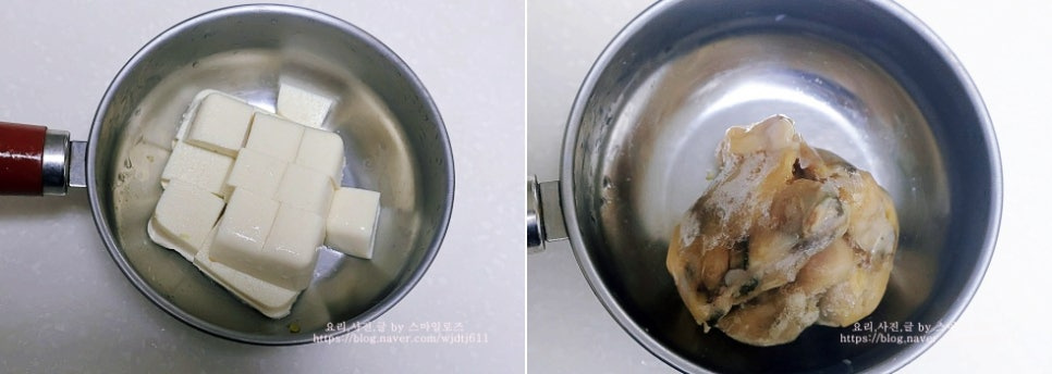 두부도 한 입 크기로 썰고 냉동실 바지락도 준비하면 재료 준비 끝입니다