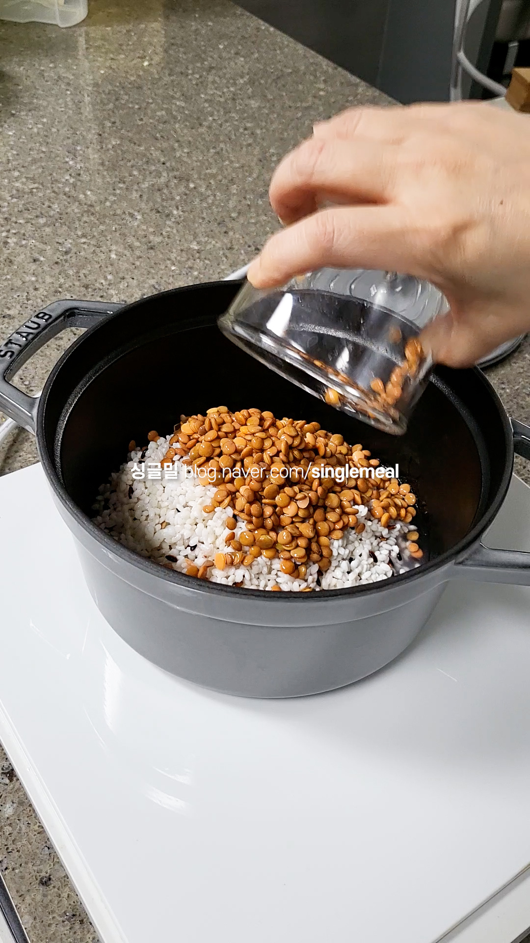 물은 전체 곡류와 1:1 비율이면 충분하다.