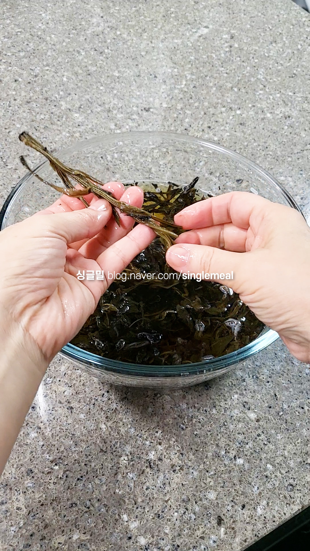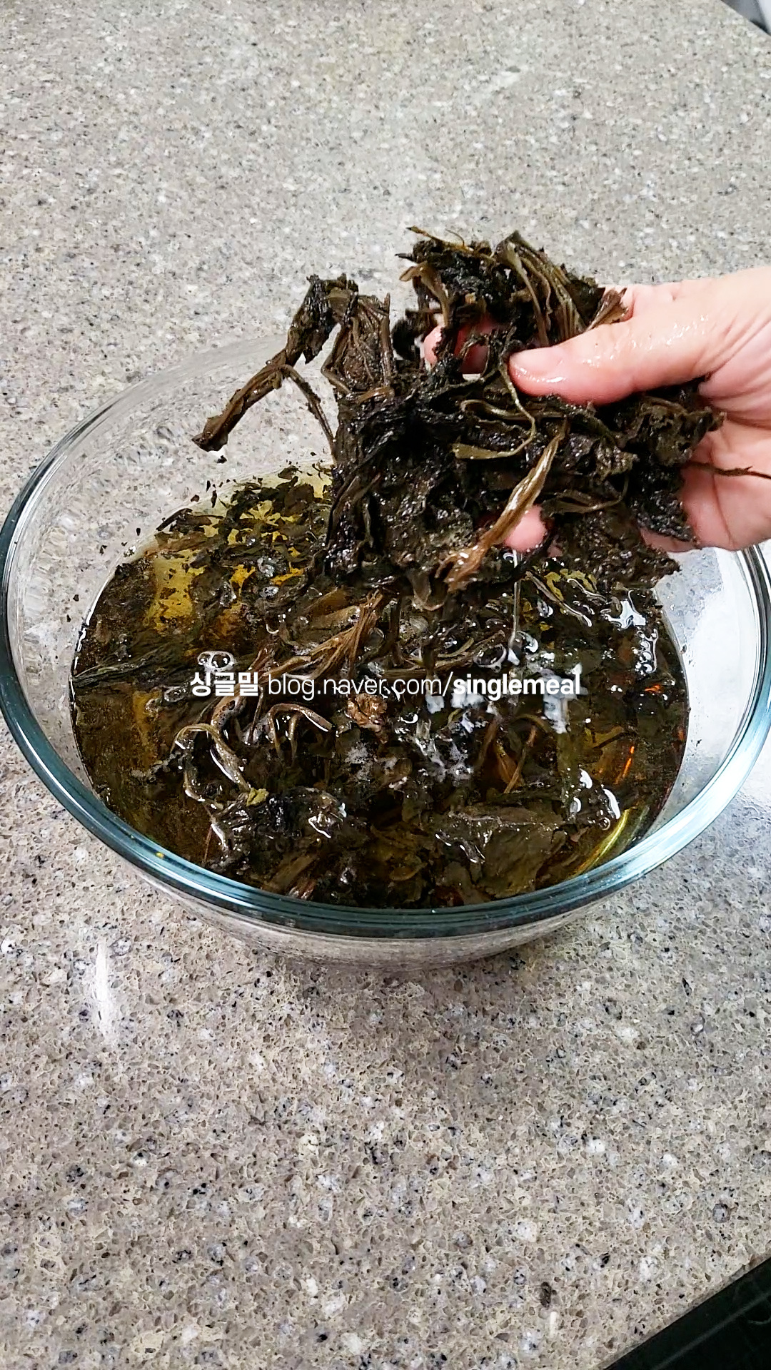 건조 곤드레는 충분한 시간 불려야 하는데 중간에 물이 갈색으로 변하면 한두 번 물을 갈아준다.