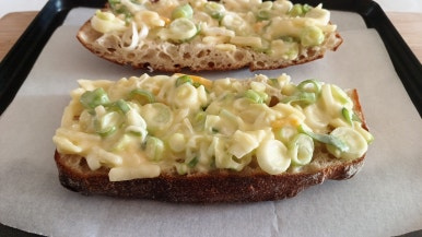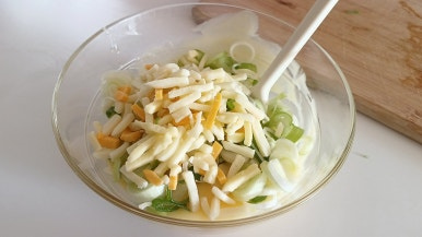 대파 80g , 샤워도우빵 1개 , 슈레드치즈 55g , 무염버터 40g , 양파가루 1/2-1작은술 , 알룰로스 1-2큰술 , 소금 1/3작은술 , 마요네즈 5-6큰술 , 아가베시럽 2-4큰술